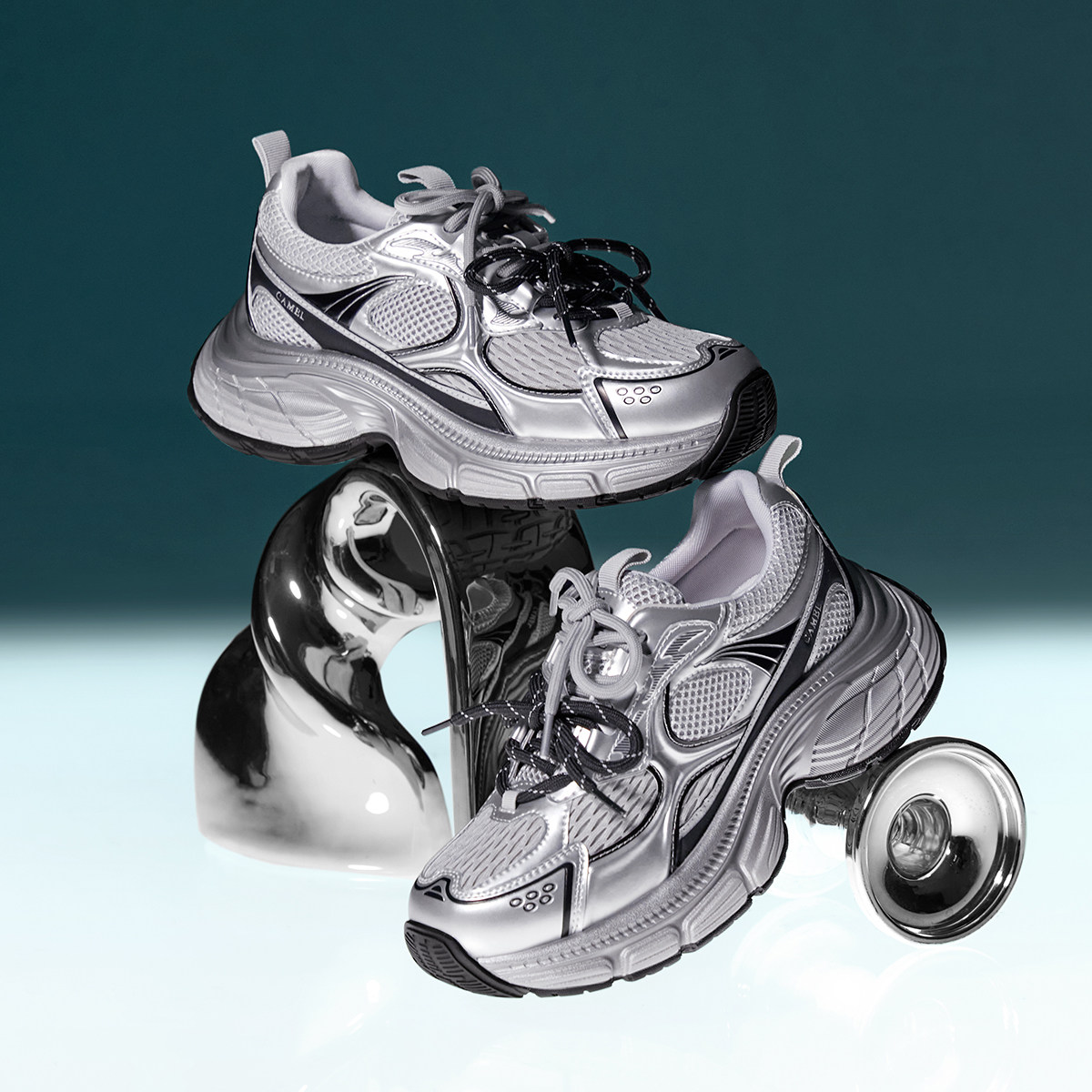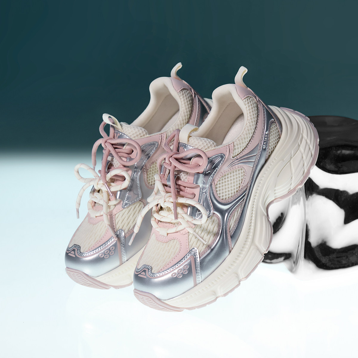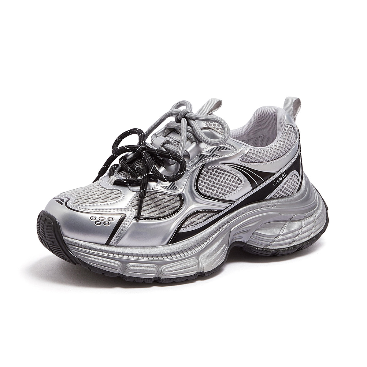 骆驼老爹鞋女2026春季新款双鞋带拼接老爹鞋厚底增高舒适运动鞋