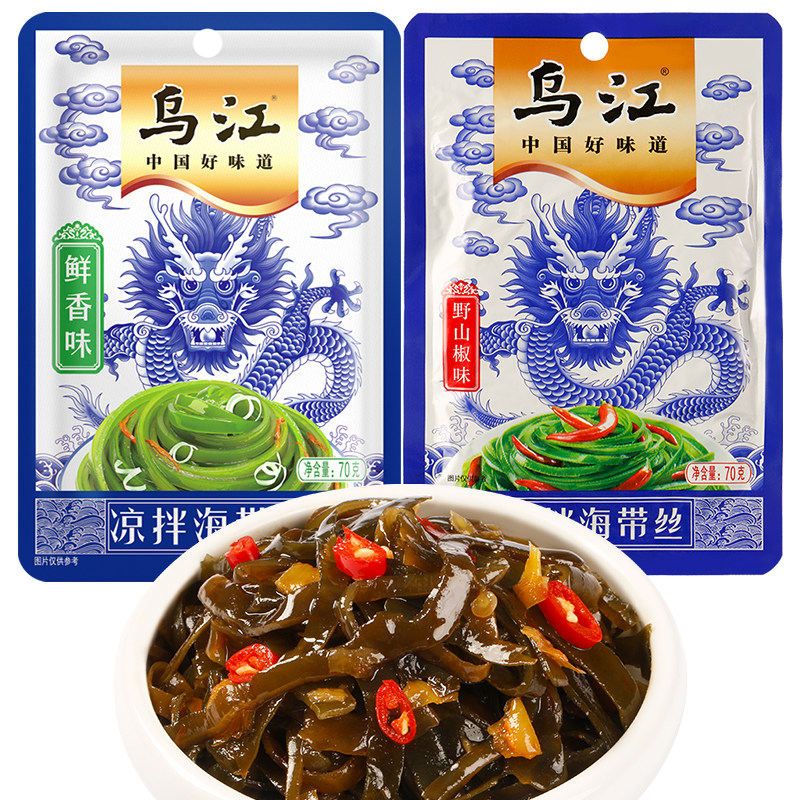 乌江海带丝70g鲜香味山椒味下饭菜微辣榨菜袋装涪陵咸菜开袋50g
