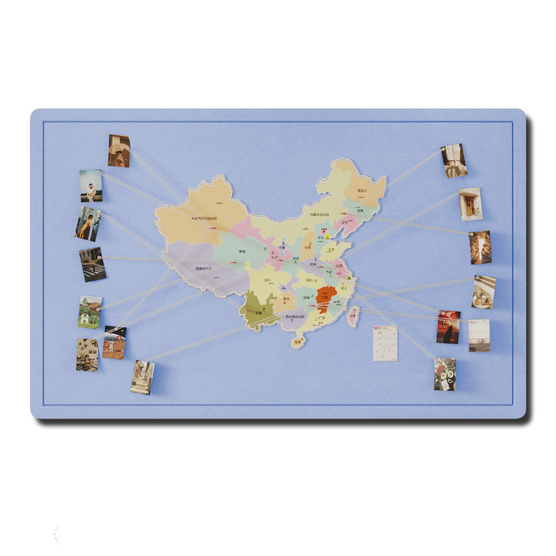 中国毛毡地图旅行足记打卡可标记照片墙办公室客厅墙面装饰展示板