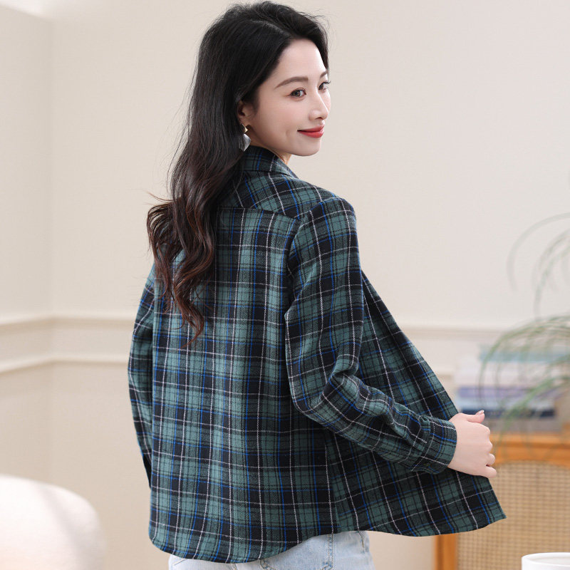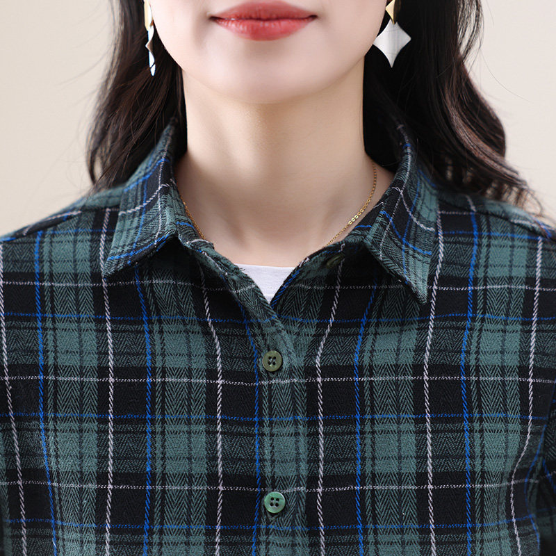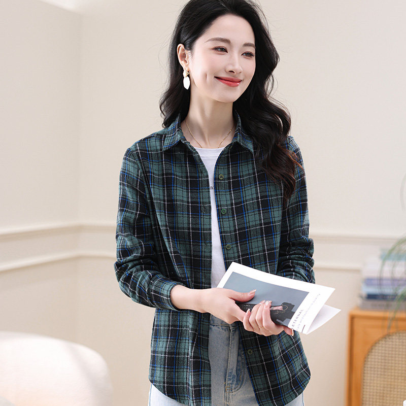 恒源祥宽松休闲衬衫格子女百搭复古优雅上衣衬衣外套新款长袖翻领