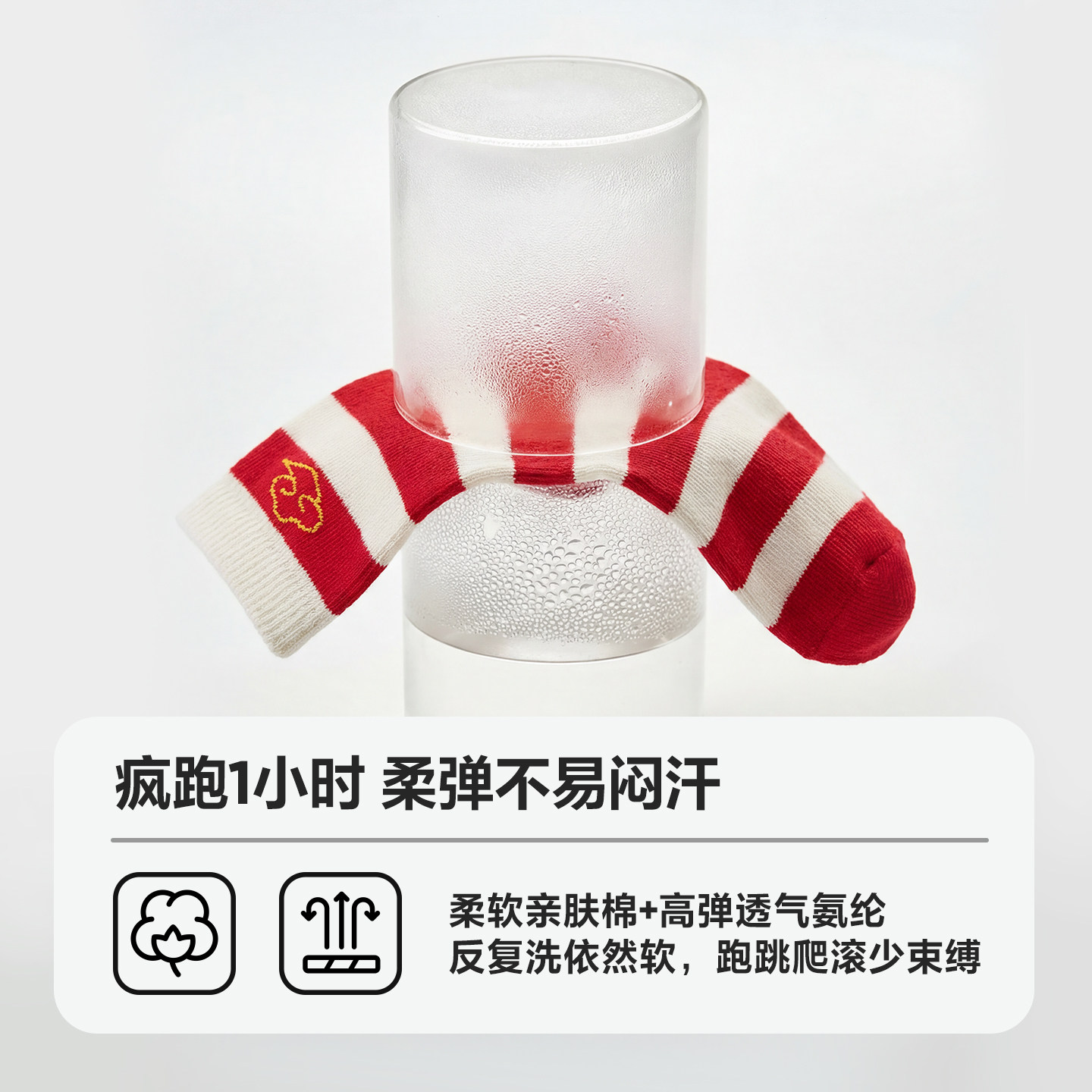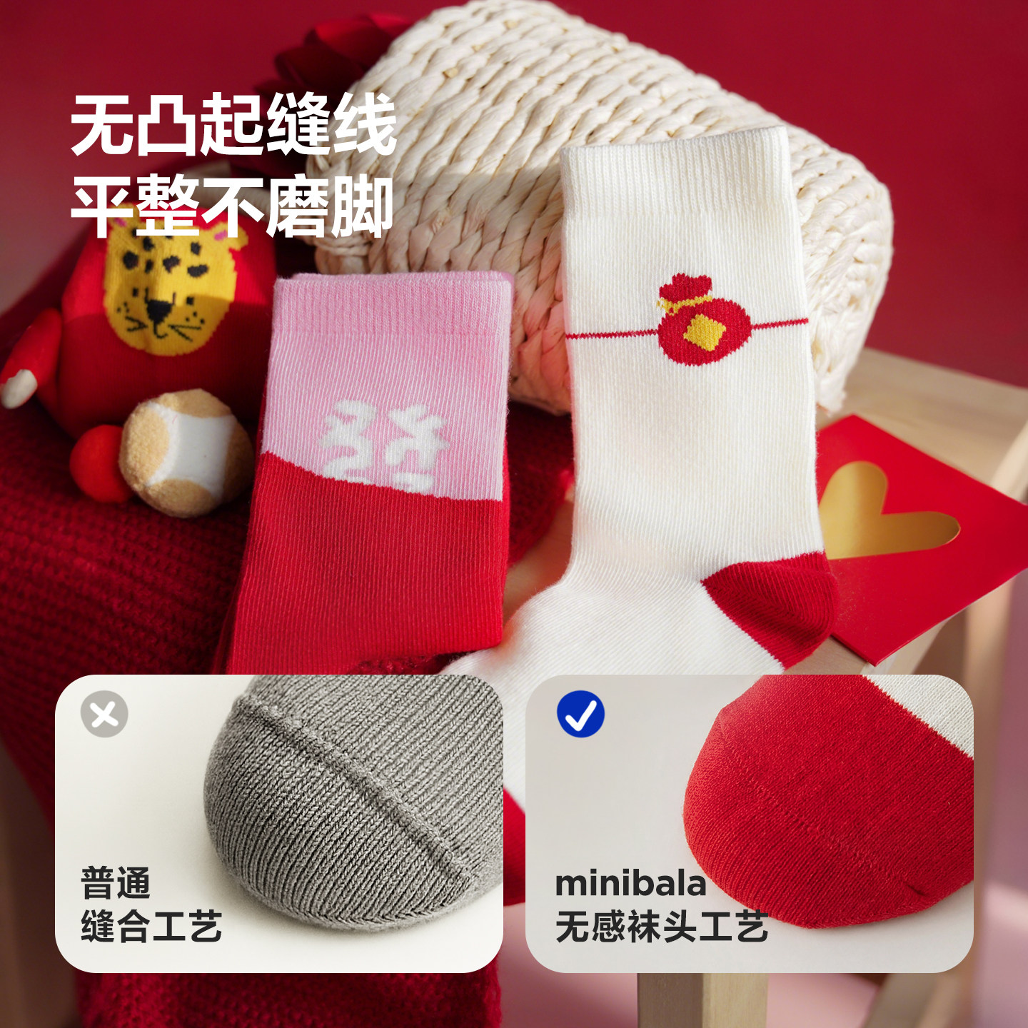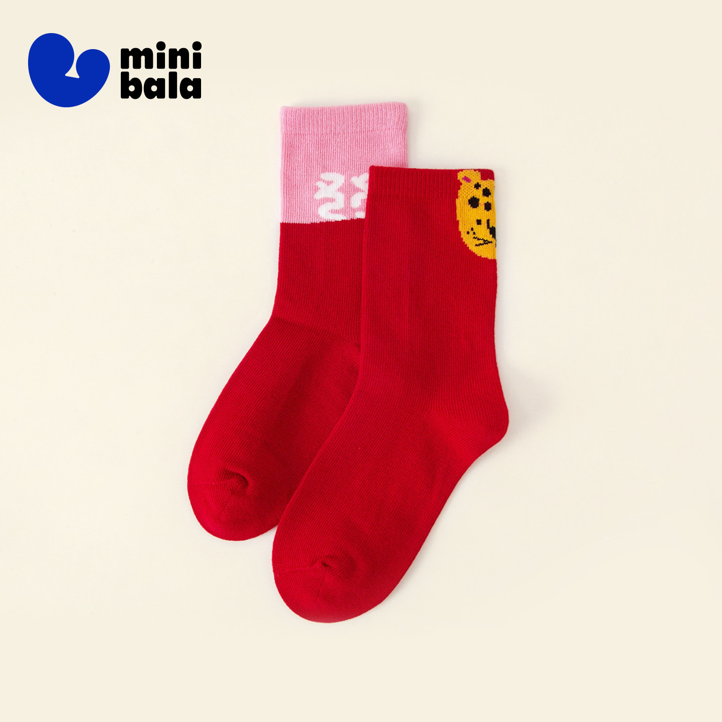 迷你巴拉巴拉儿童袜子男女宝宝红运中筒袜新年红色本命年2双装冬