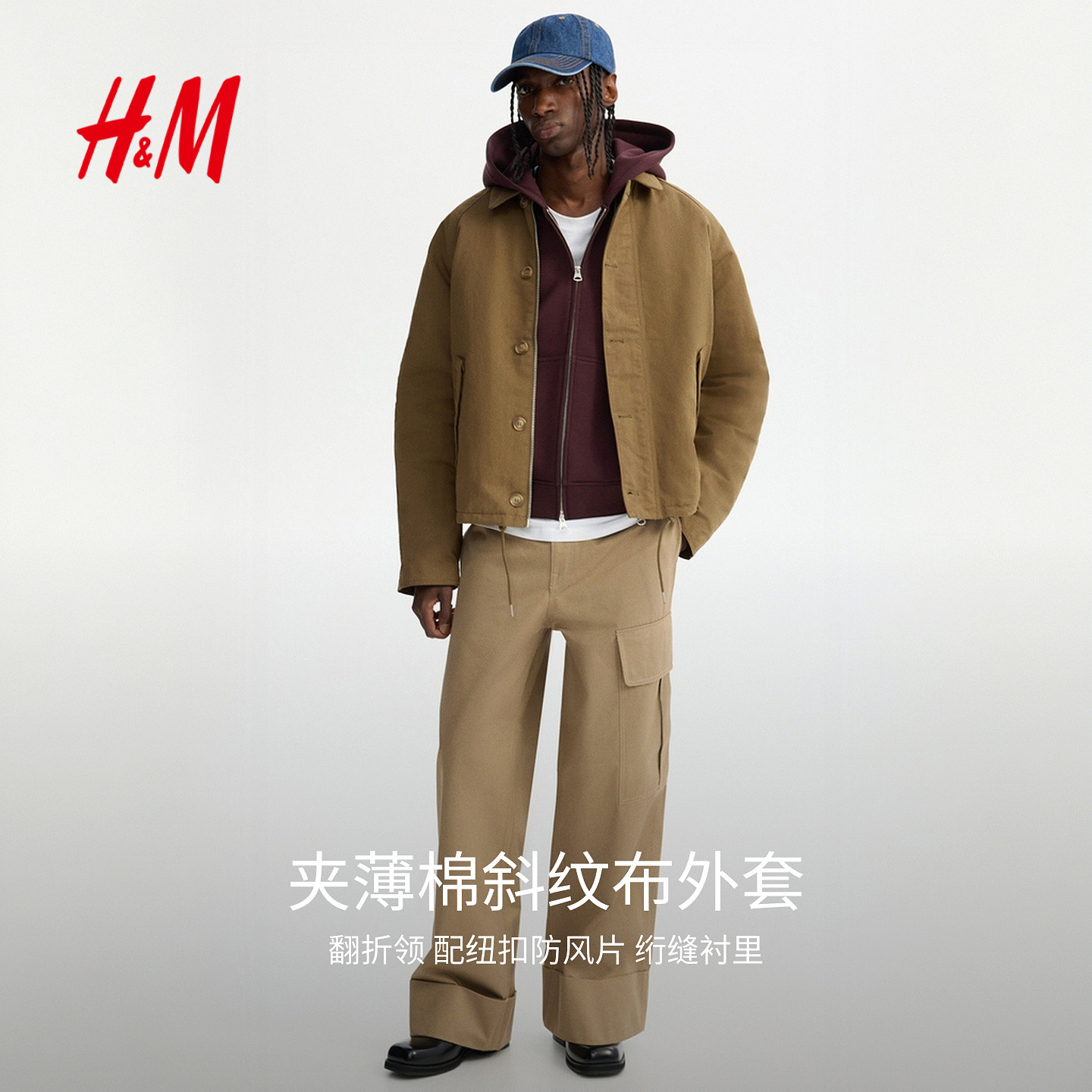 HM男装棉服冬季夹棉保暖休闲户外斜纹布外套棉衣1295929