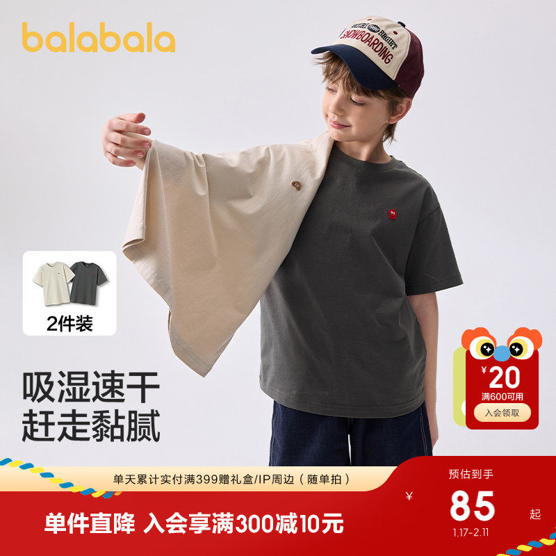【2件装】巴拉巴拉童装儿童t恤短袖2025新款男童女童夏装吸湿速干