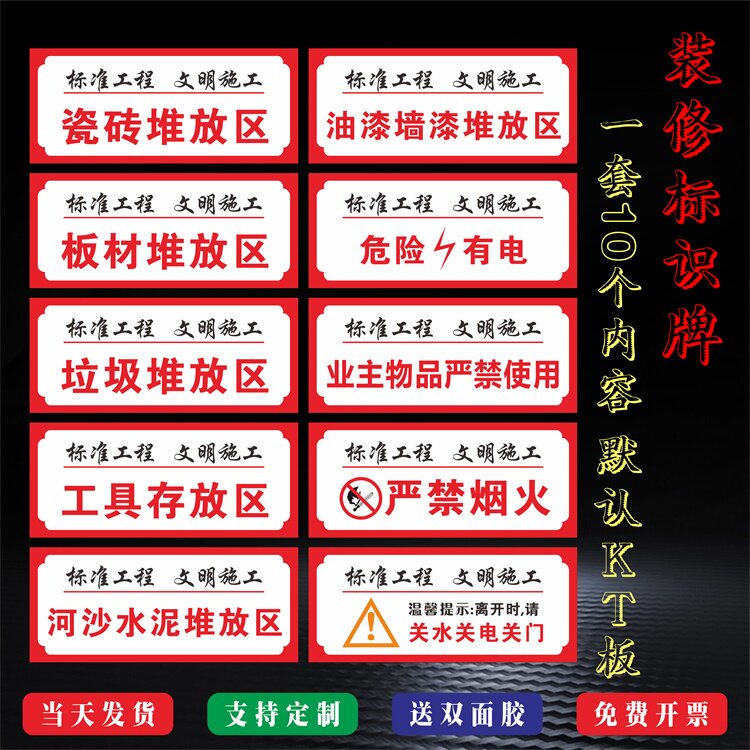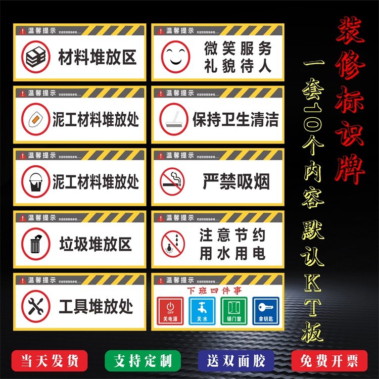 装修公司标识牌工地施工现场提示警示牌材料垃圾堆放区下班四件事
