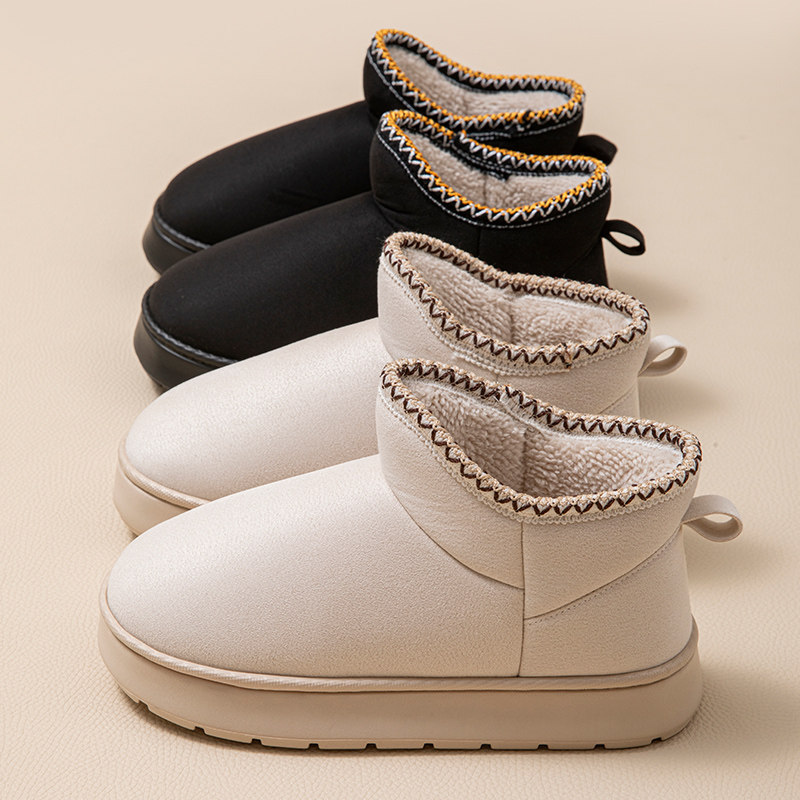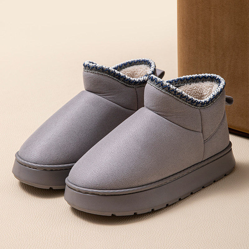 高帮雪地靴加绒厚底毛绒情侣居家室内户外棉鞋灰色白色绒面过冬