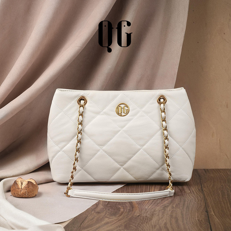 QG包包女2025新款头层牛皮单肩斜挎包流浪包轻奢大容量托特包女