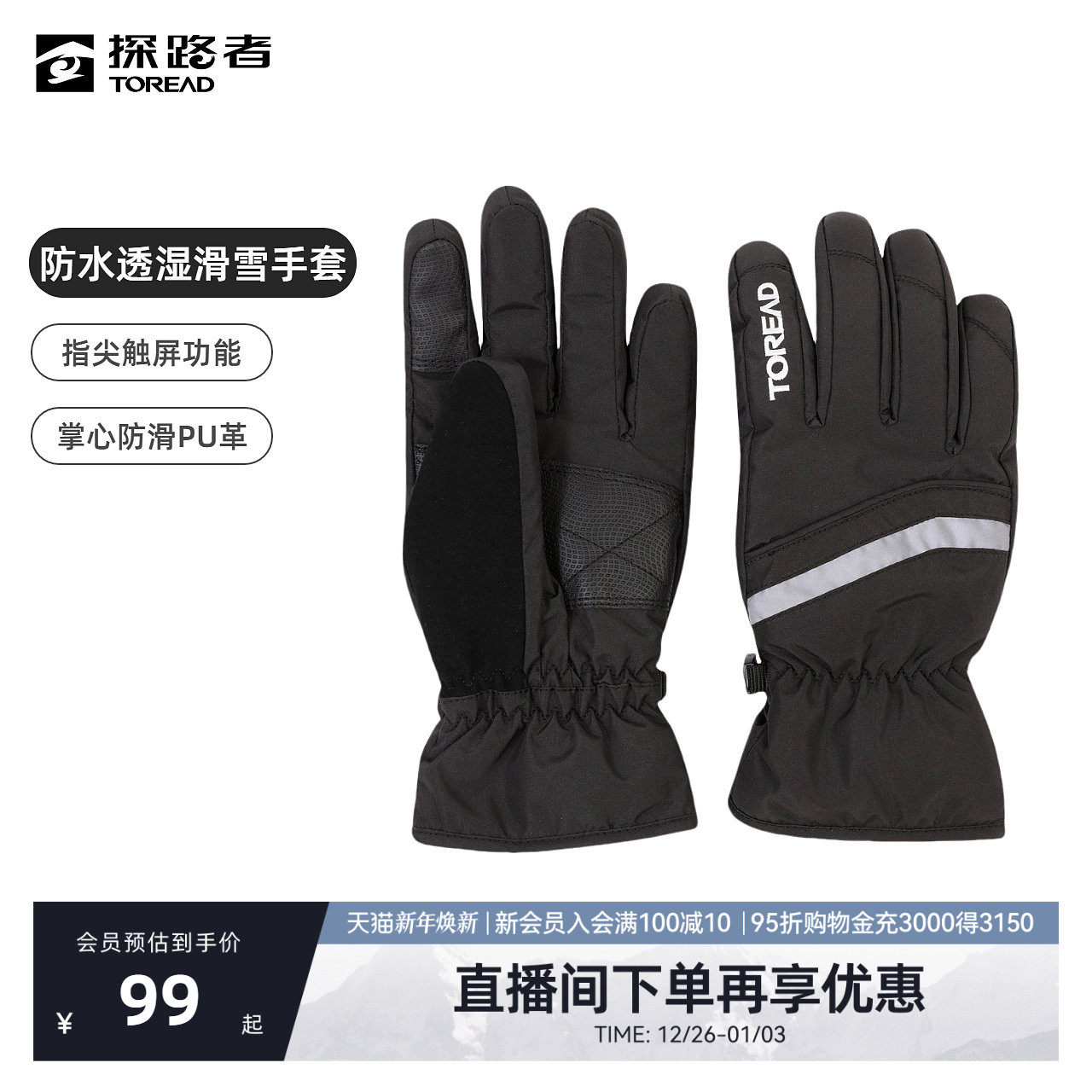 探路者手套冬季新款户外滑雪防滑防水可触屏耐磨透气保暖运动配件