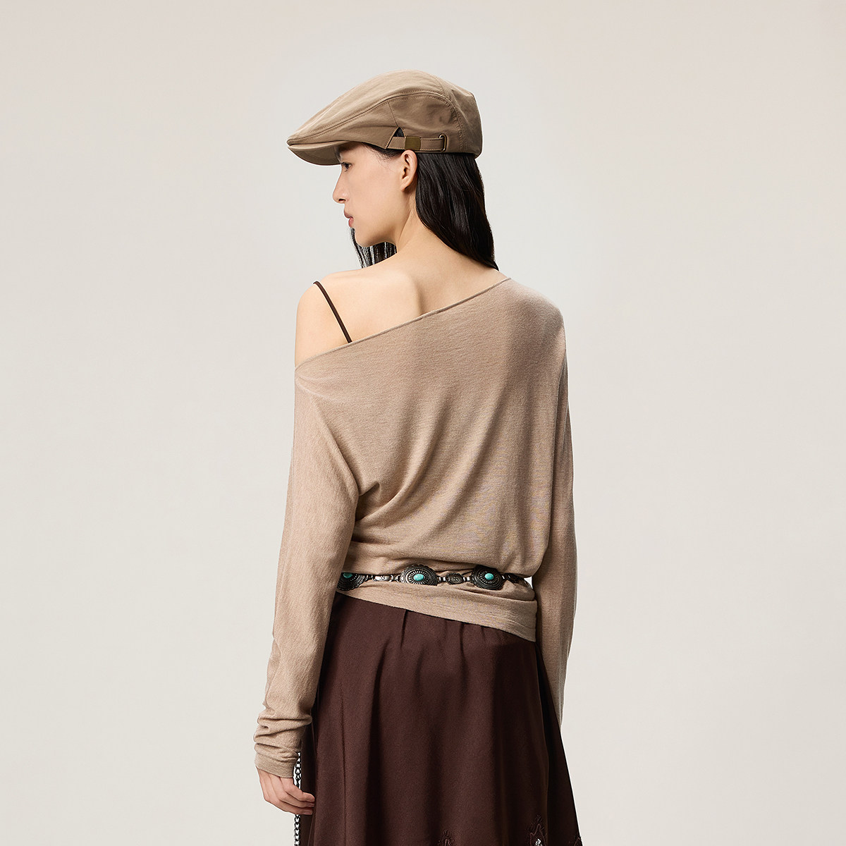 【新品】OCHIRLY欧时力 天丝羊绒醋酸斜肩轻薄针织毛衫女2026春季
