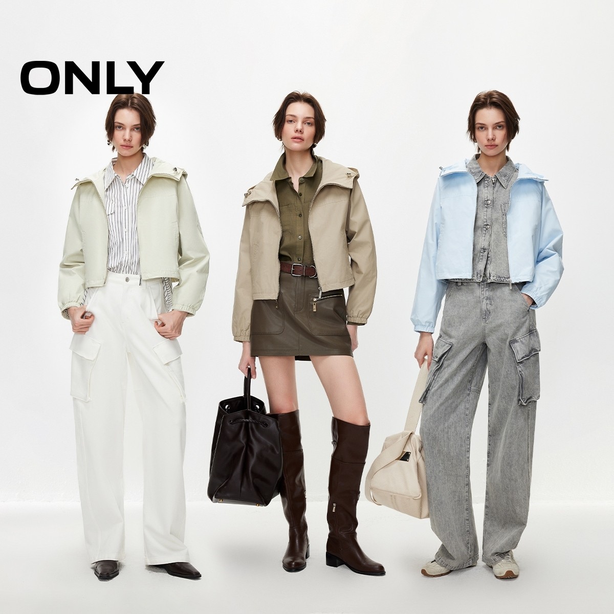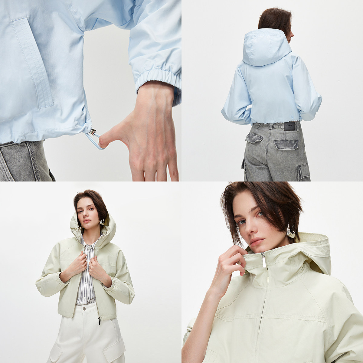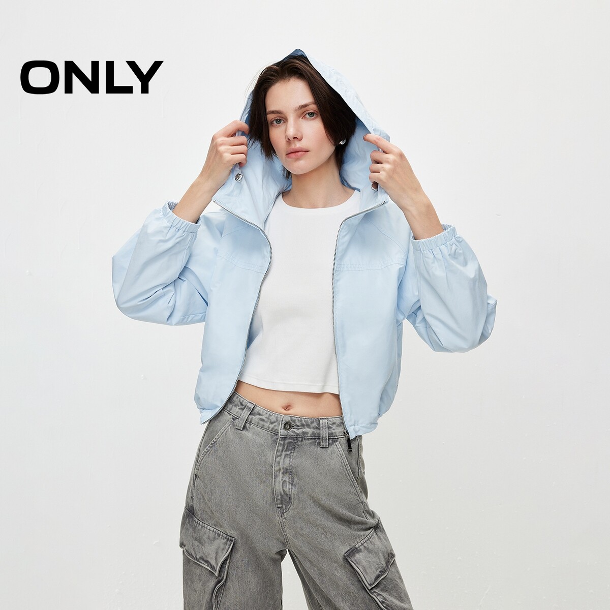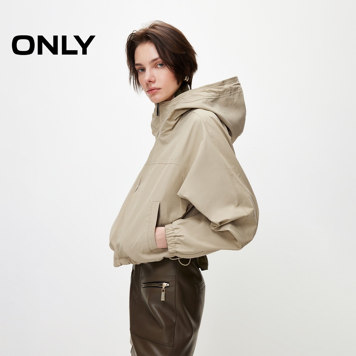 ONLY2026春季新款纯色连帽实用双口袋设计插肩宽松开衫风衣外套女