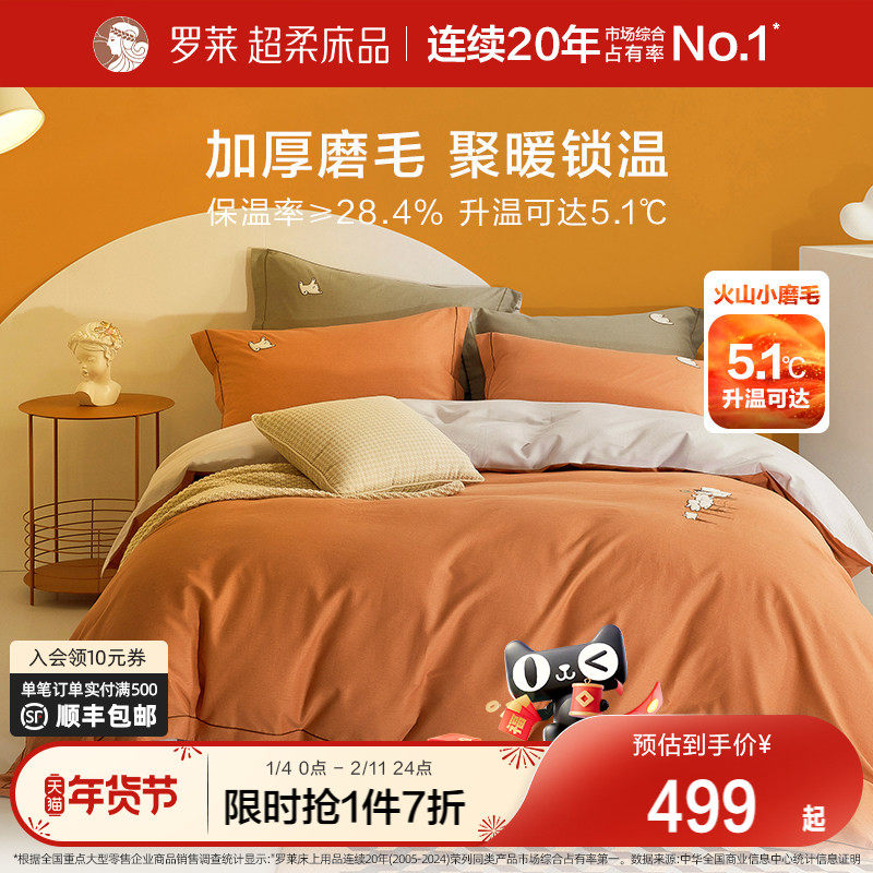 罗莱家纺旗舰店床上用品全棉磨毛四件套加厚床单被套被罩三件套