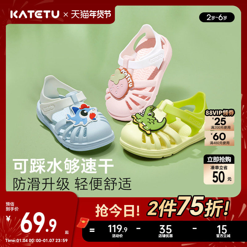 卡特兔凉鞋女童拖鞋新款夏季卡通防滑男童踩水沙滩鞋宝宝休闲童鞋