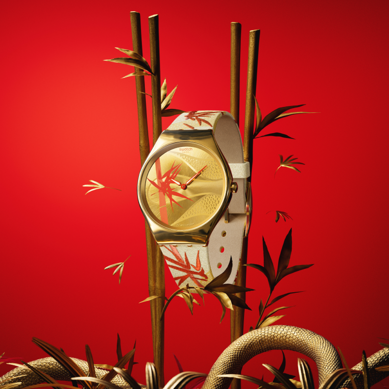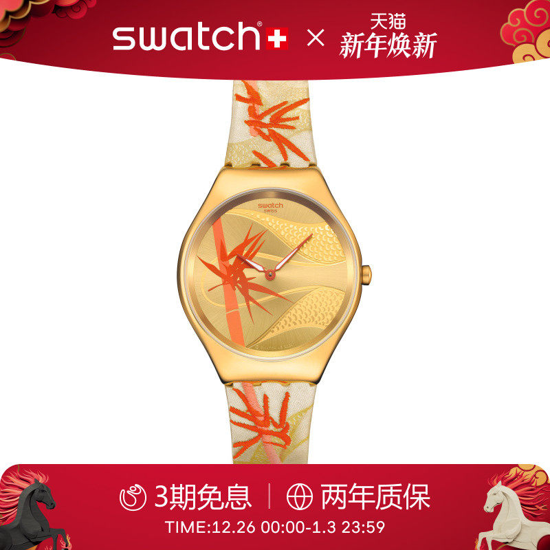 Swatch斯沃琪瑞士手表生肖款纤薄静音腕表蛇年新年限定出游穿搭