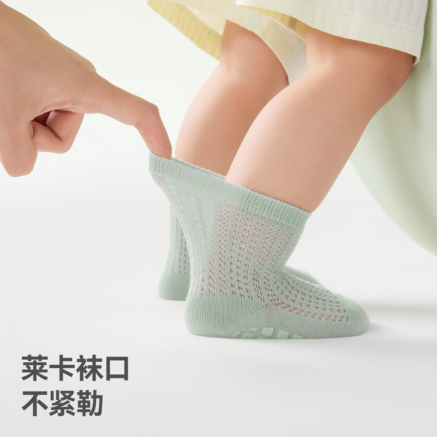 贝肽斯学步袜宝宝防滑地板袜春夏婴儿袜子薄款网眼中筒袜子夏