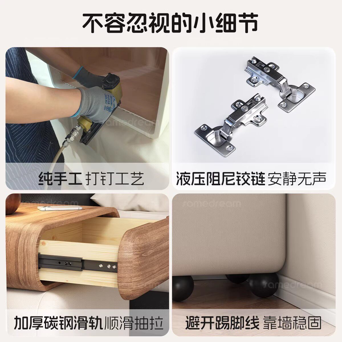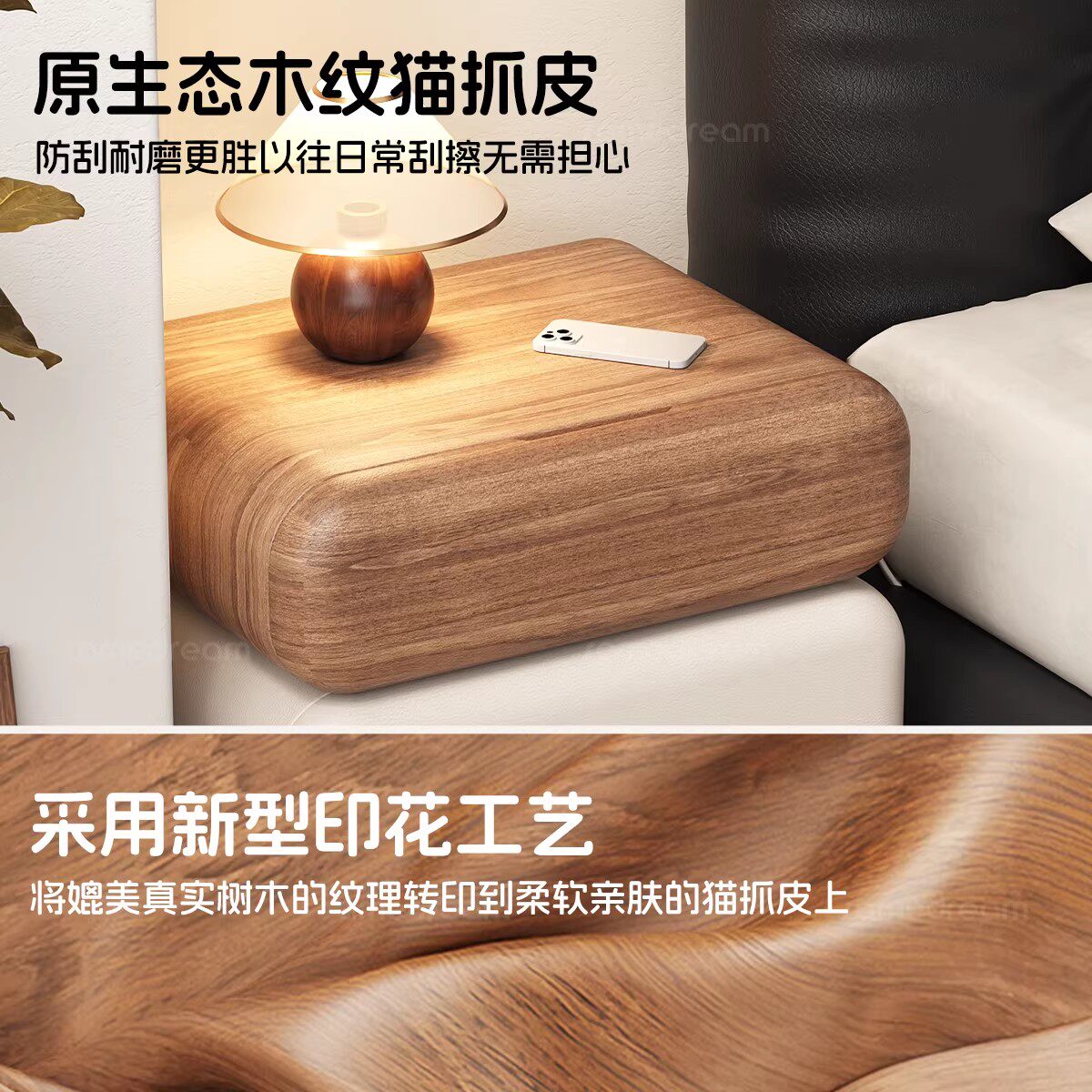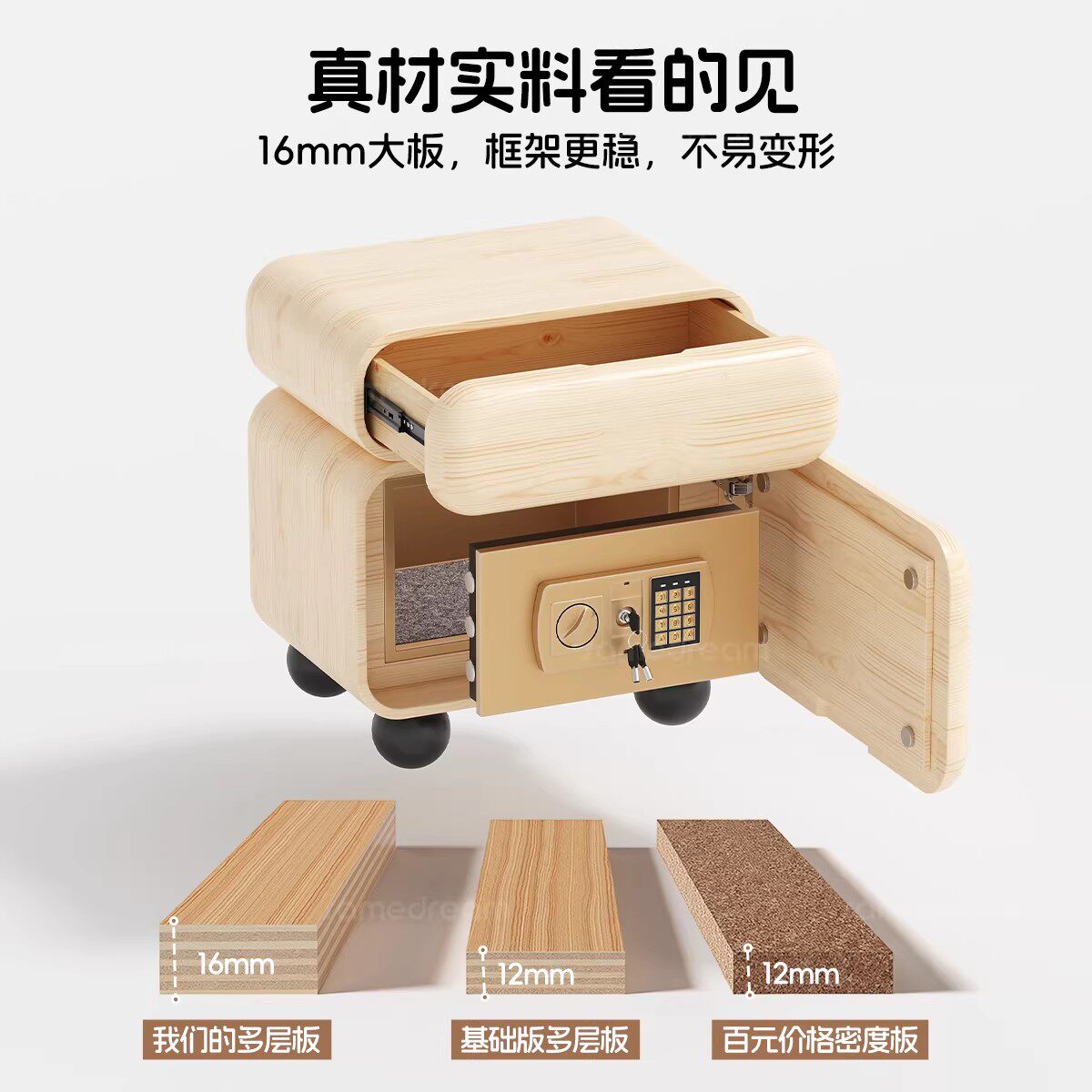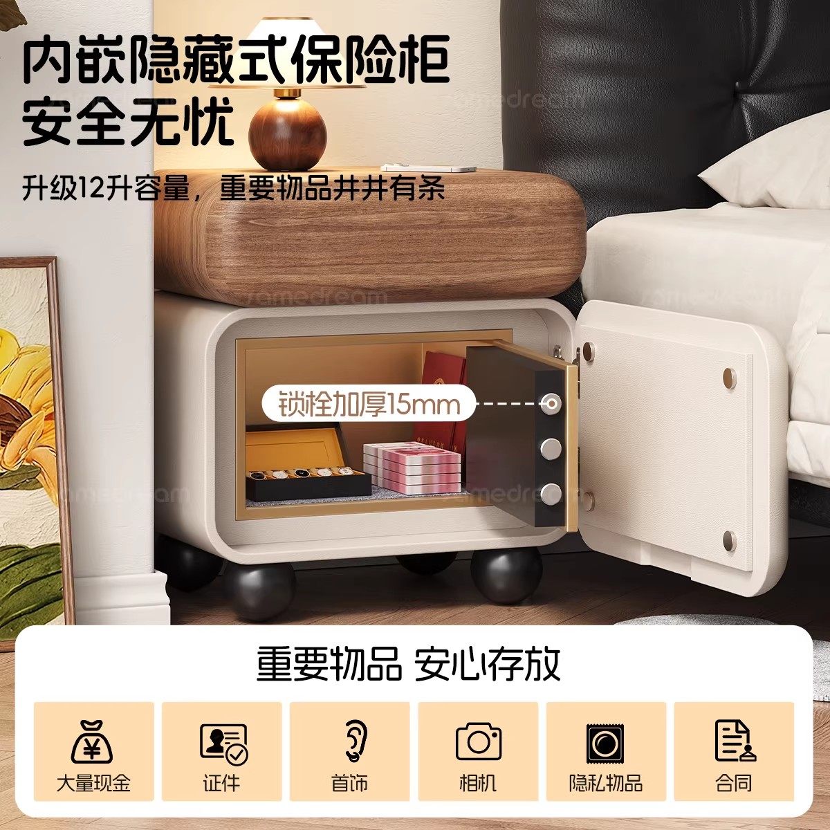 三梦智能床头柜保险箱一体带锁实木家用卧室中古奶油风小型床边柜