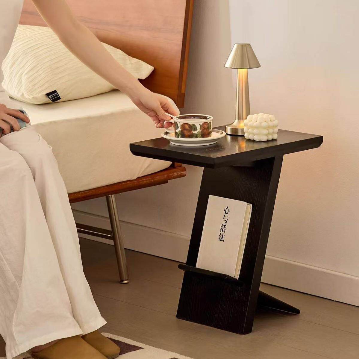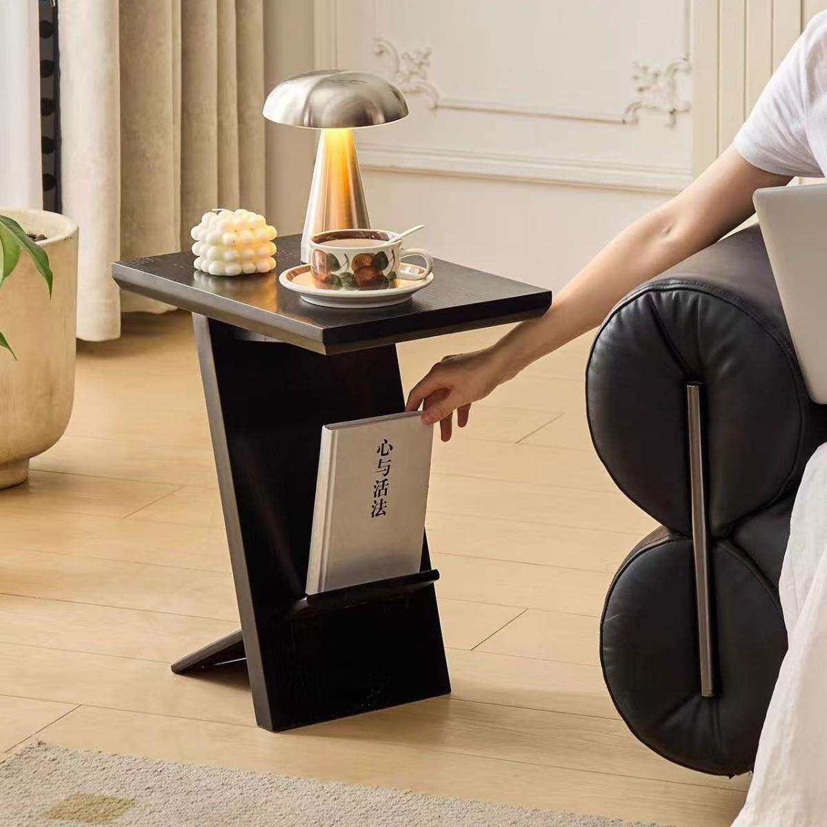 北欧极简实木Z字边几茶几家用客厅沙发角几复古网红杂志置物架