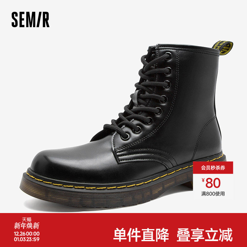 Semir女鞋马丁靴女2025秋冬季百搭英伦风女靴子黑色爆款厚底短靴