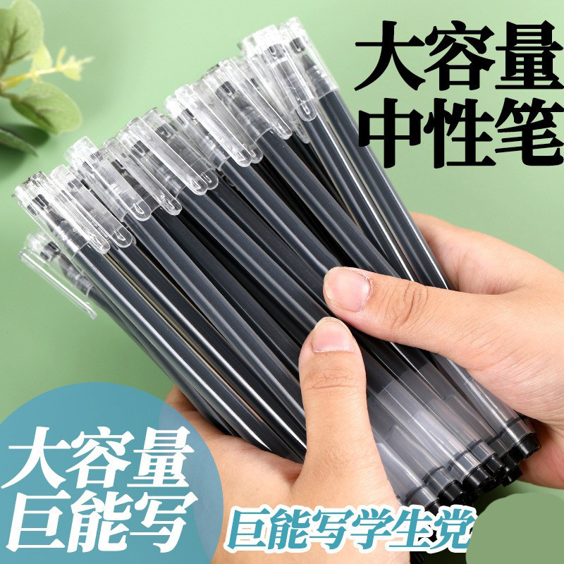 黑笔巨能写中性笔批发学生用大容量速干水笔0.5mm碳素笔刷题笔