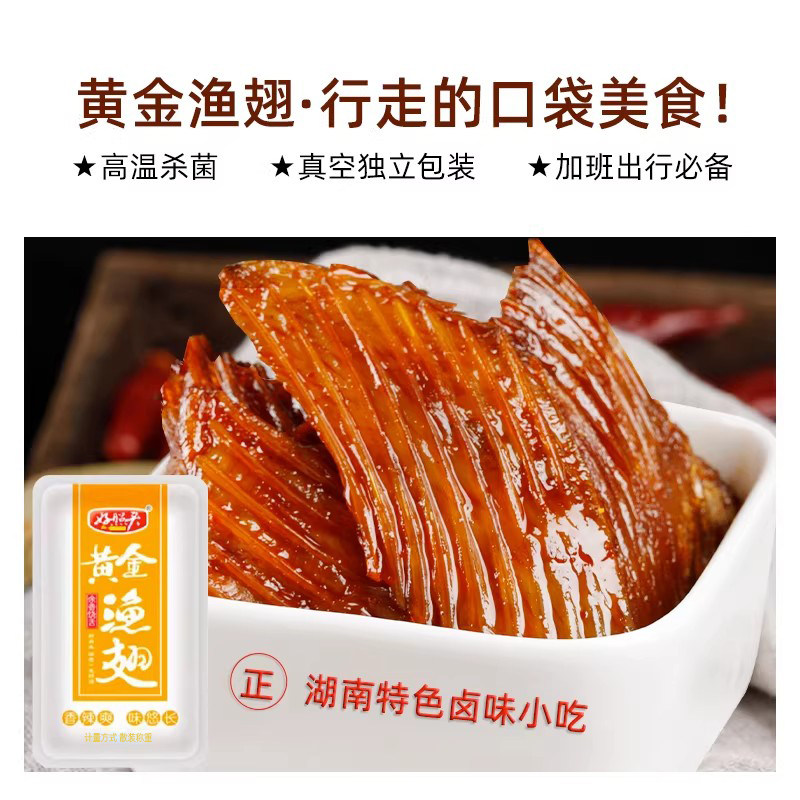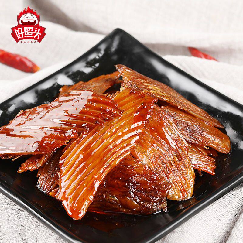 黄金鱼翅鱼排烟熏香辣鱼刺变态辣好照头休闲小吃湖南爆辣零食特产