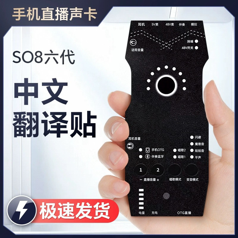 SO8六代中文面板翻译贴声卡话筒手机专业K歌录音网红户外直播设备
