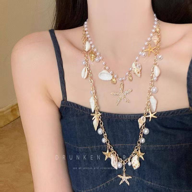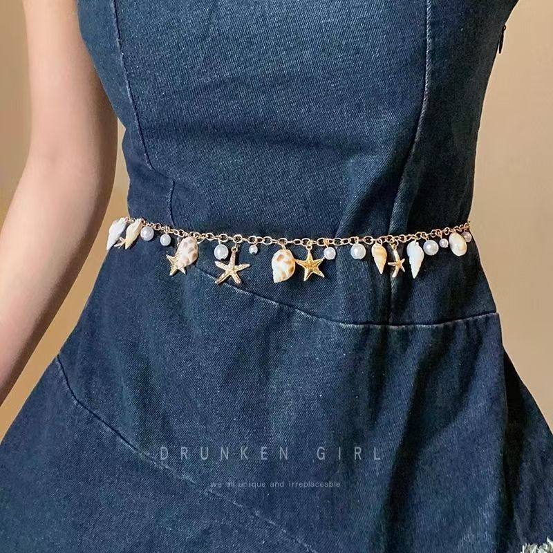 波西米亚沙滩海星贝壳项链配饰女夏天海边度假风金属腰链装饰腰带