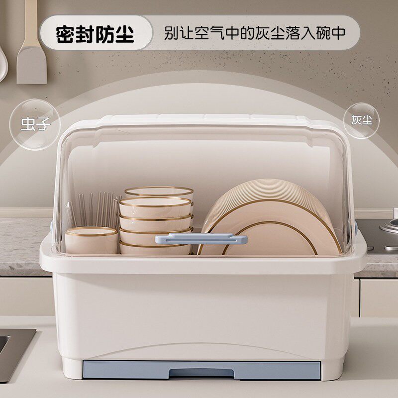 厨房放碗筷收纳盒带盖家用沥水碗柜收纳架装餐具碗碟盘置物架加厚
