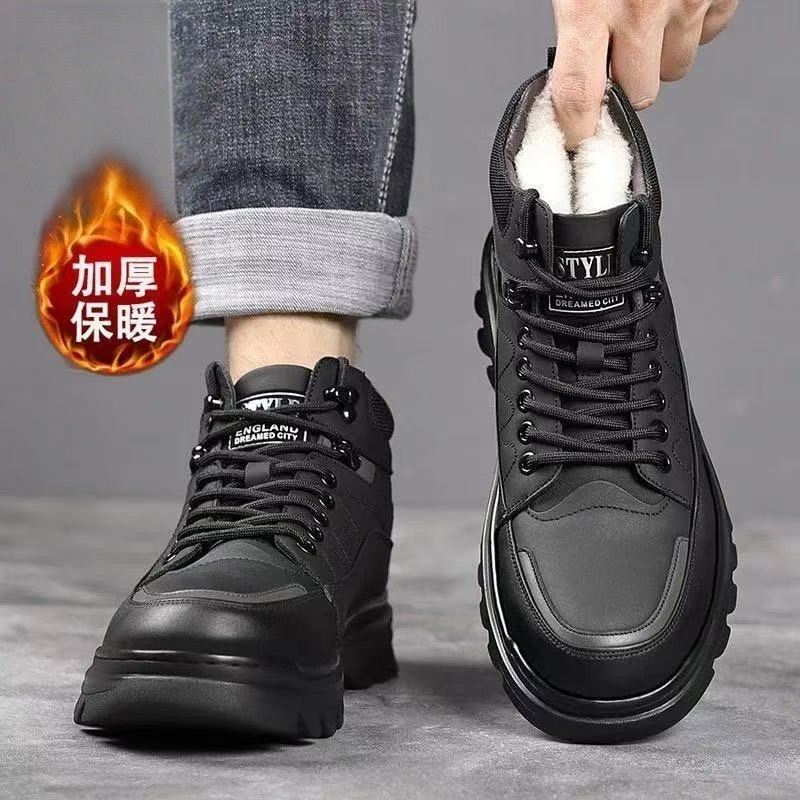 外贸男鞋冬季保暖高帮休闲皮鞋男真皮商务加绒加厚马丁靴男士棉鞋