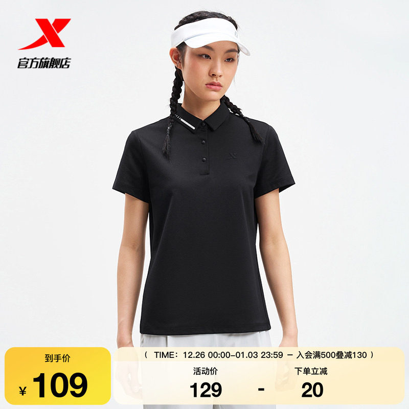 特步运动POLO衫女2025年夏季新款女装运动上衣短袖975228020054