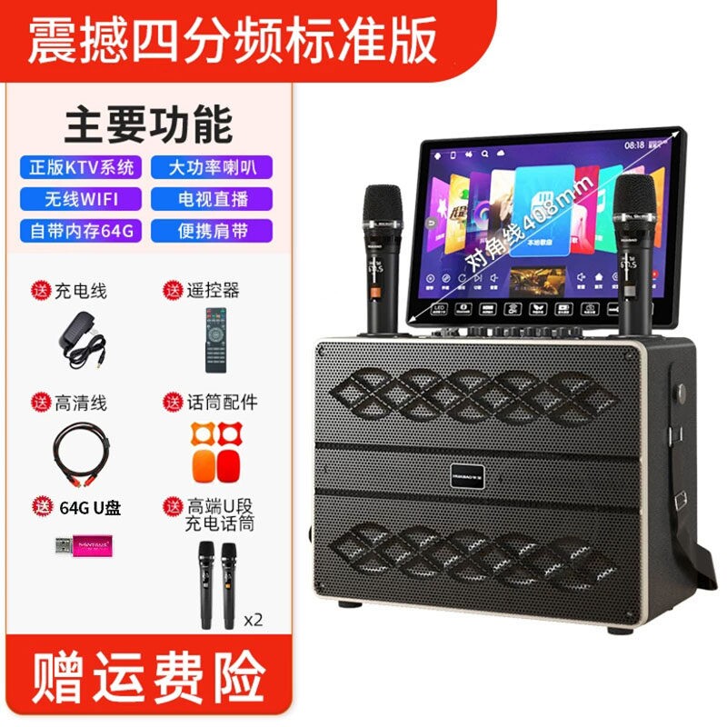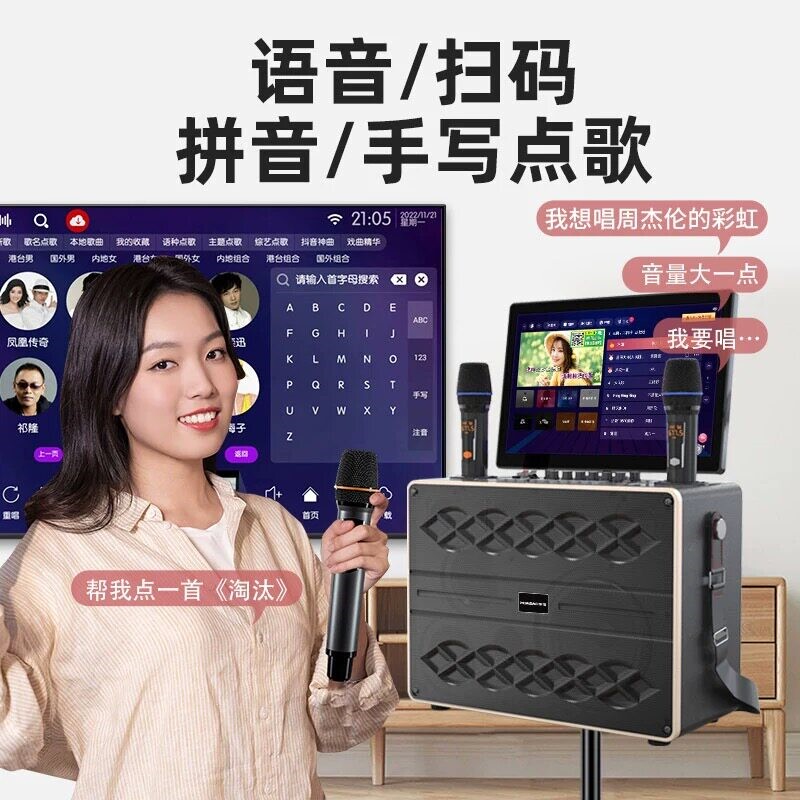 华宝广场舞音响带显示屏户外唱K卡拉OK一体机家庭ktv套装点歌机歌