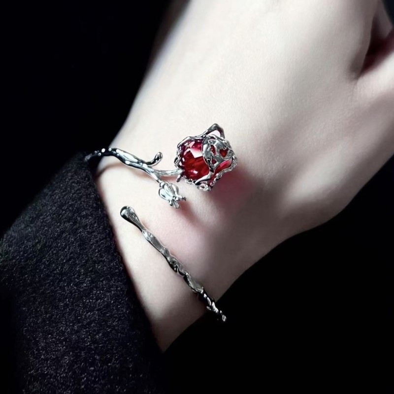 以瑰之名 冰山熔岩红玫瑰花朵藤蔓缠绕手镯高颜值送女友老婆礼物