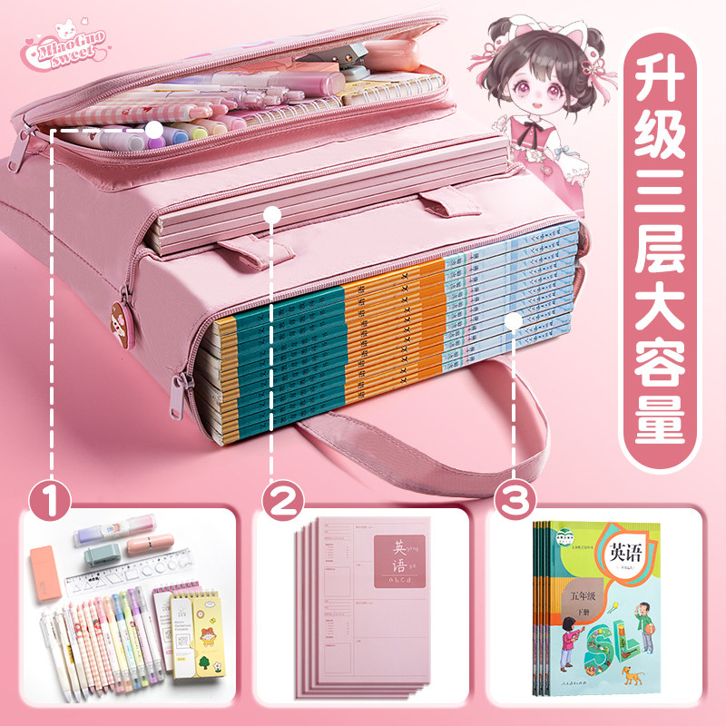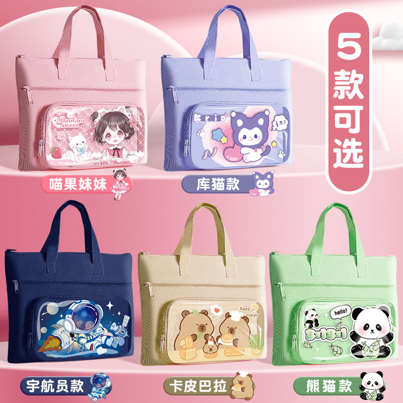 学生手提袋拎书袋小学生帆布袋男孩女孩作业文件袋补习班补习袋大容量帆布包防水收纳袋儿童学习拉链式补课包