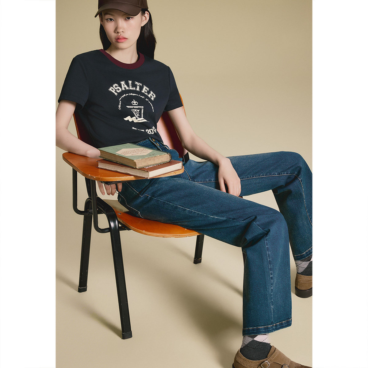 PSALTER诗篇复古高腰宽松显瘦直筒微喇牛仔裤女2025秋款