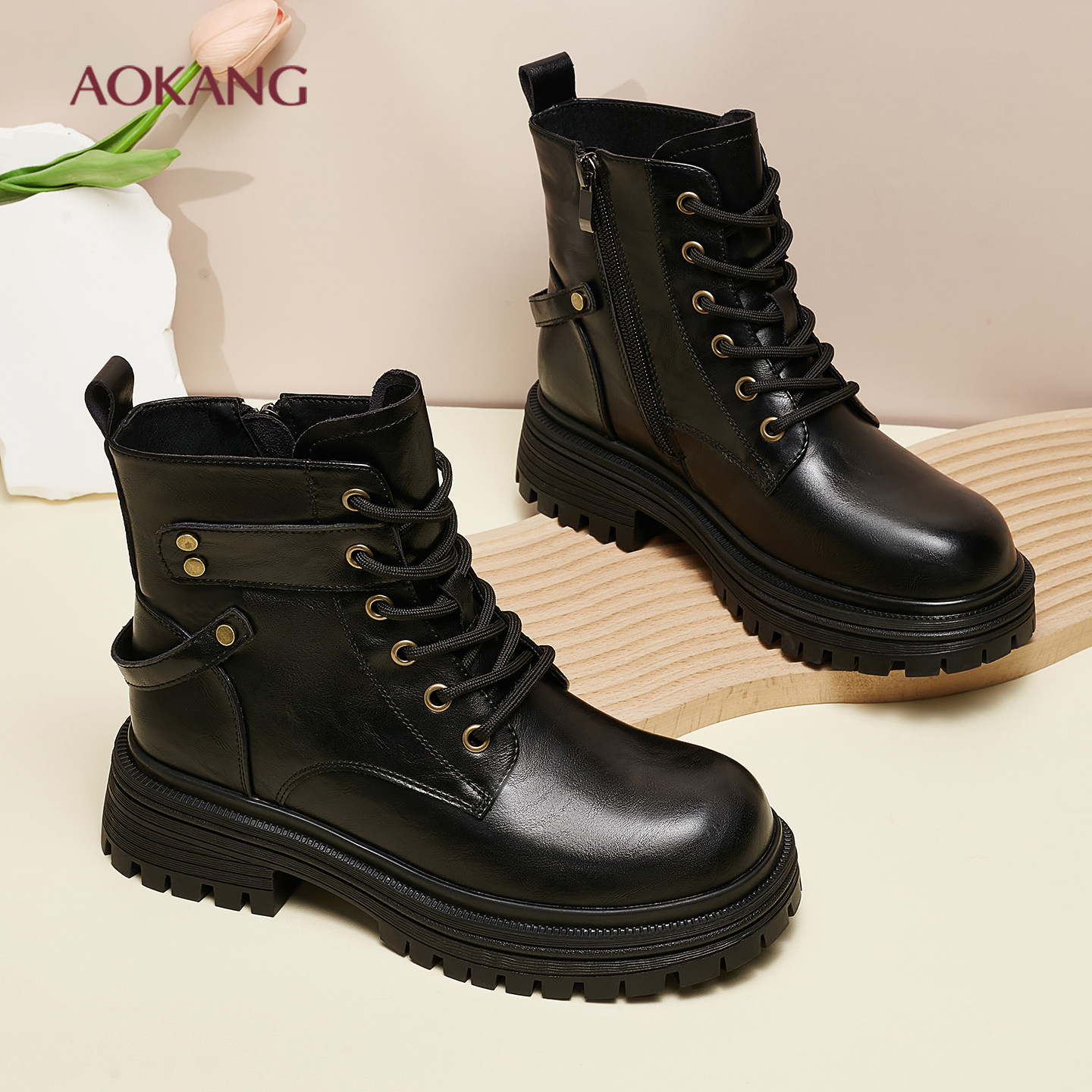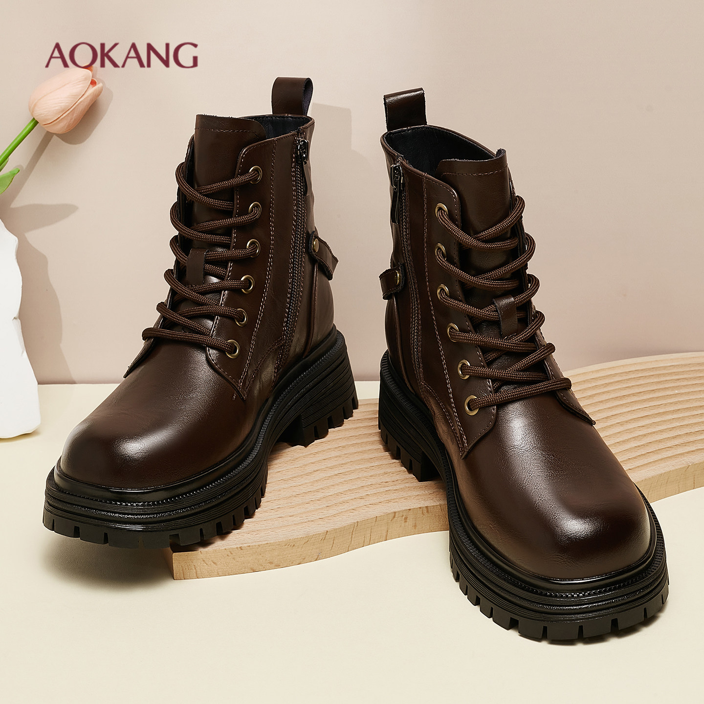 奥康 女鞋2025冬季马丁靴复古英伦风百搭厚底时尚靴子女F