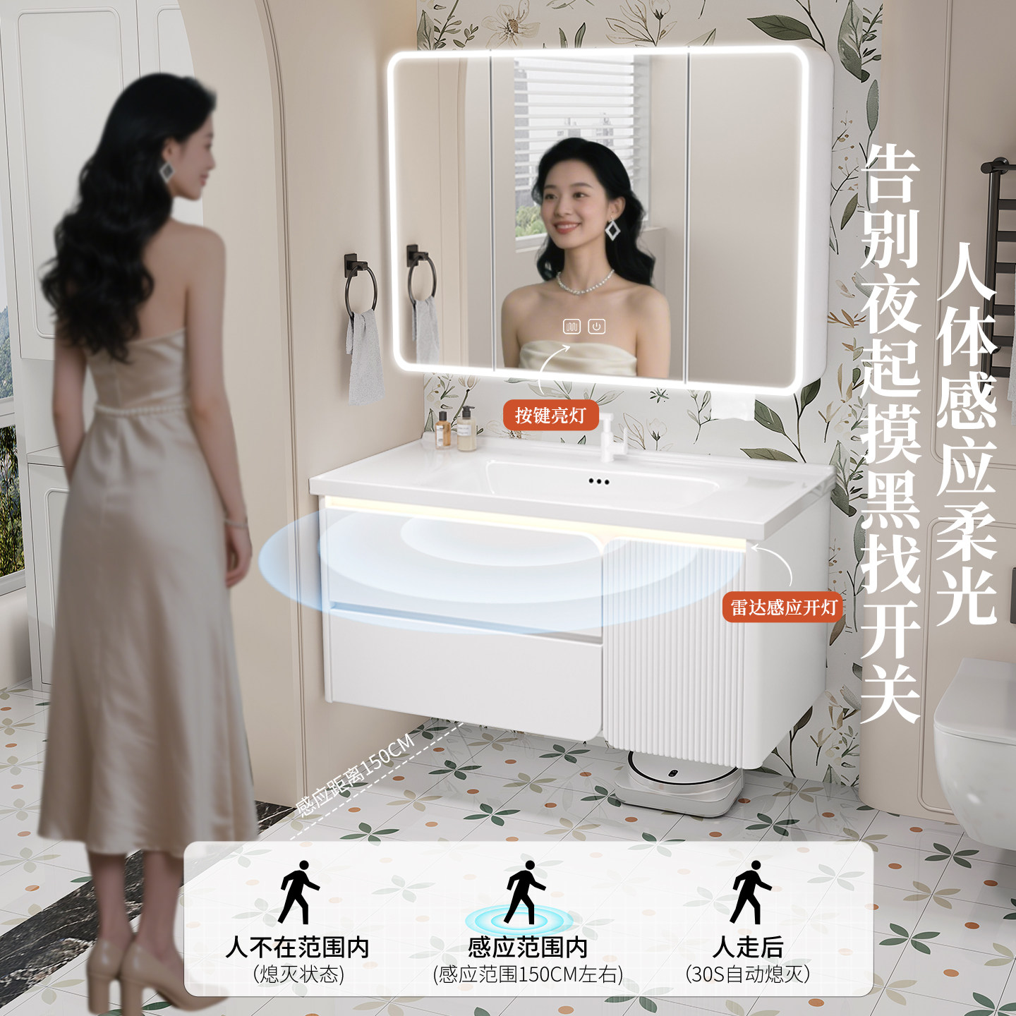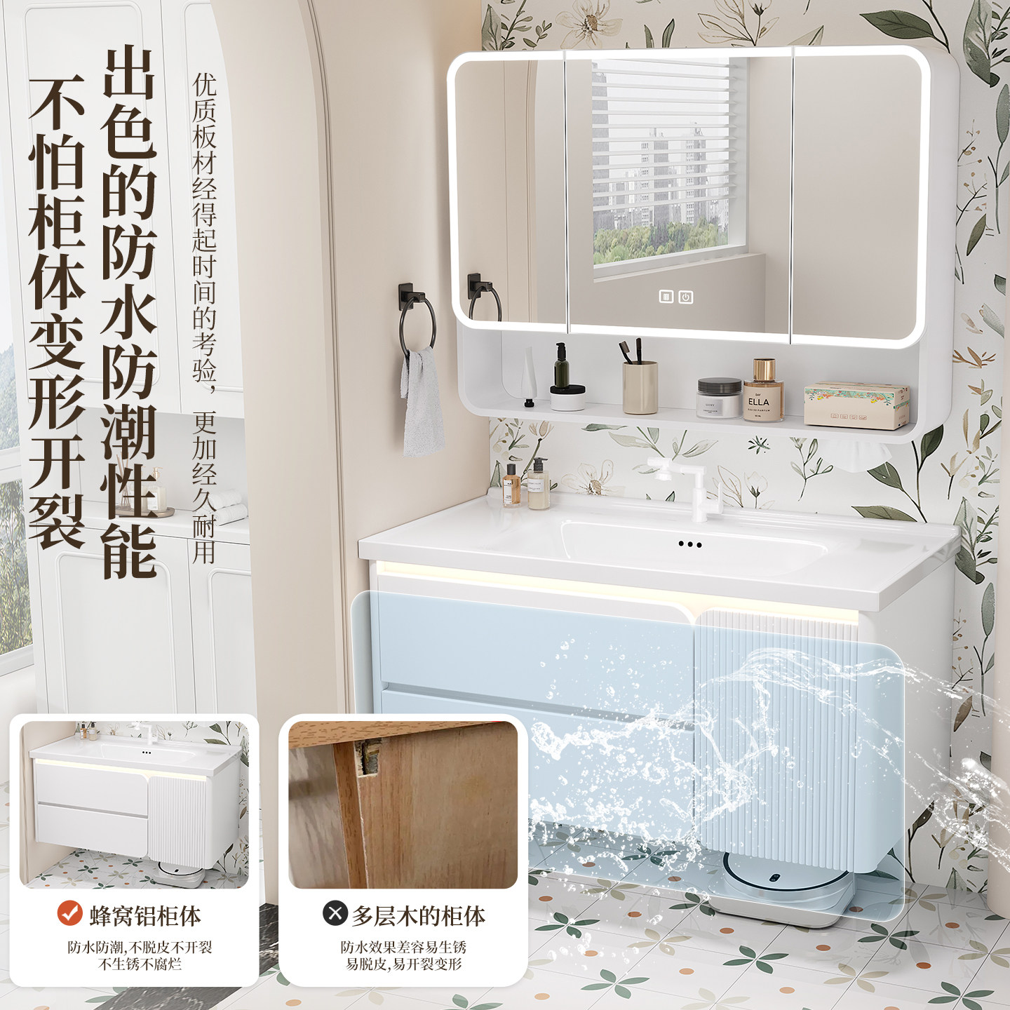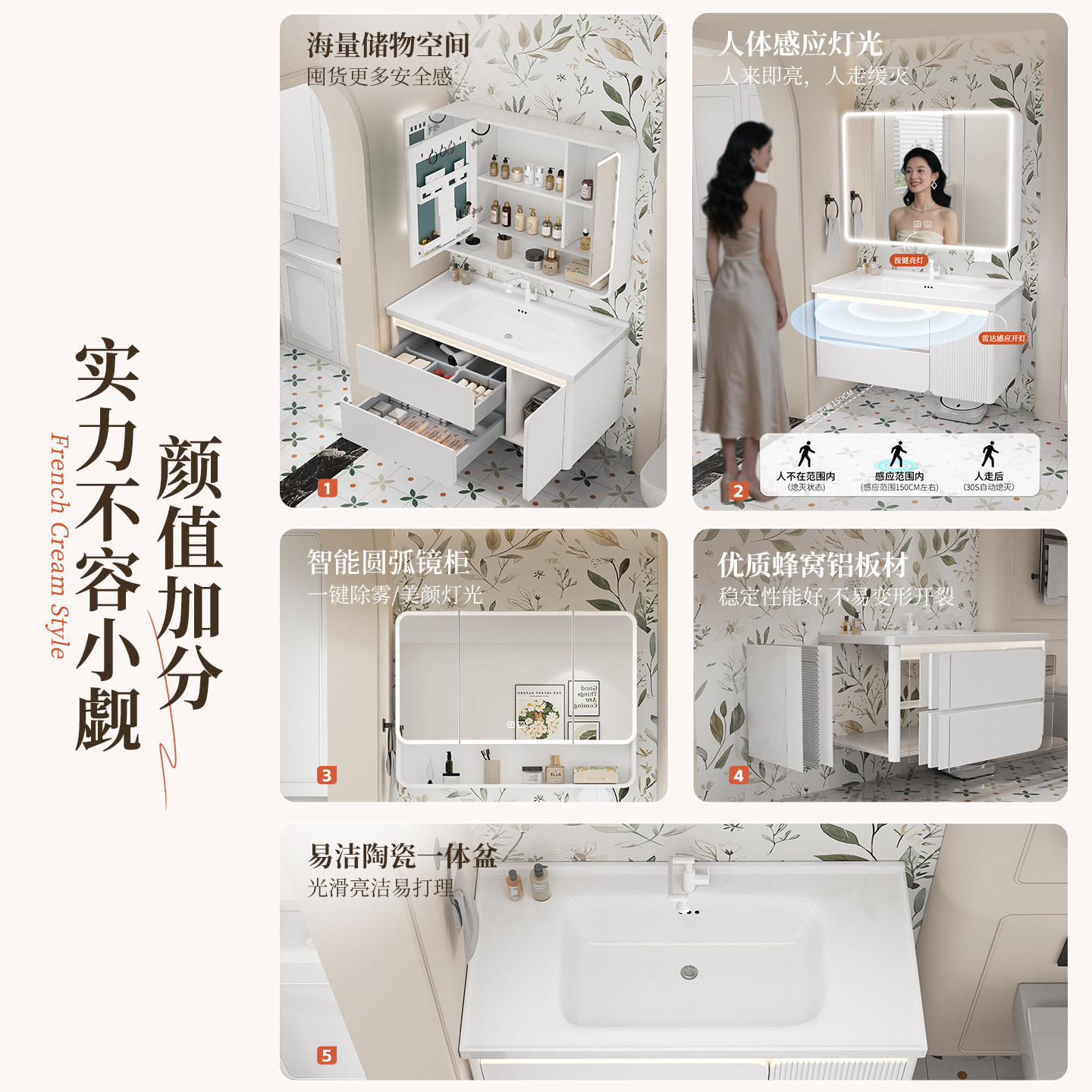 法式太空铝蜂窝浴室柜组合感应灯光洗手池台盆柜洗漱台陶瓷一体盆