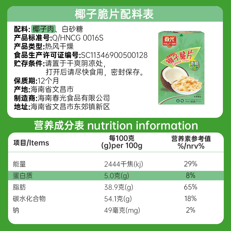 春光食品海南特产椰子脆片烘烤椰子肉片果干年货小吃零食椰肉原味
