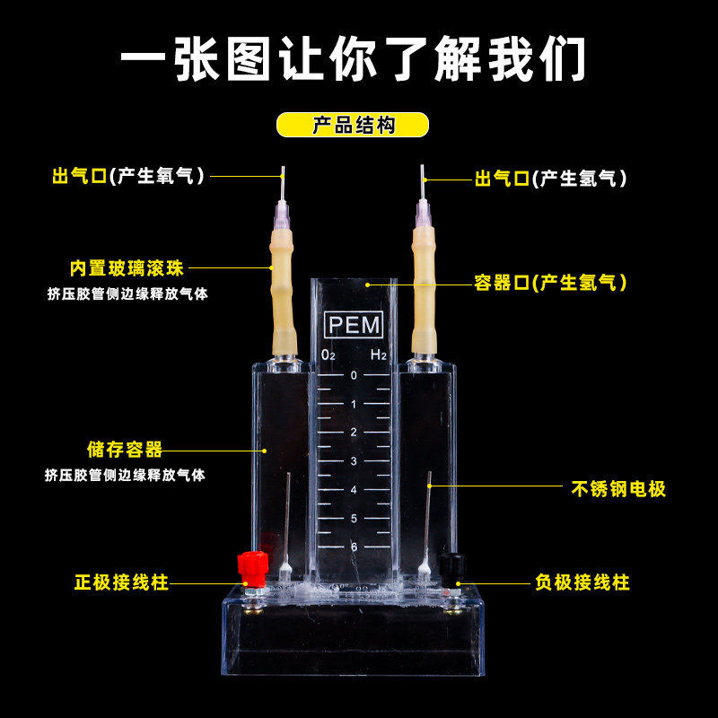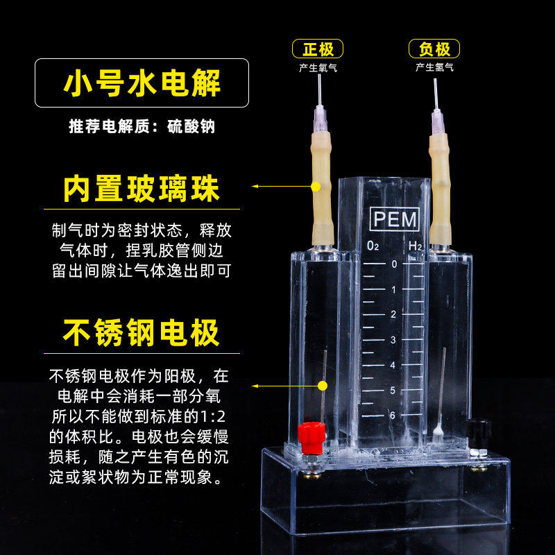 霍夫曼水电解实验器铂金极制取氢气氧气装置带电解质高中化学实验室专用电解水演示教学仪器器材