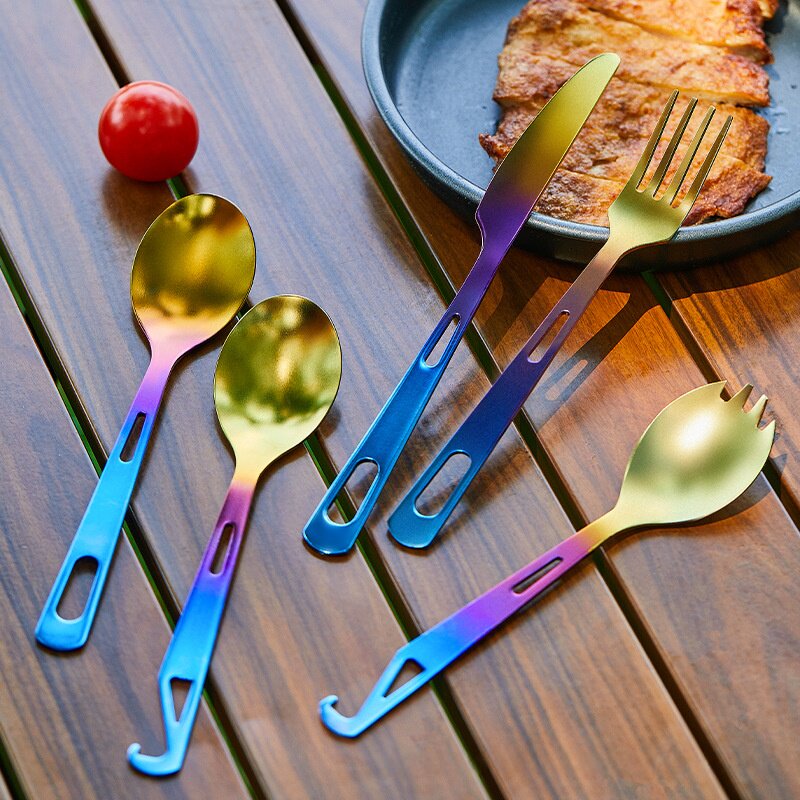 纯钛折叠叉勺旋转餐具露营野营钛餐具筷勺子雪拉碗套装折叠