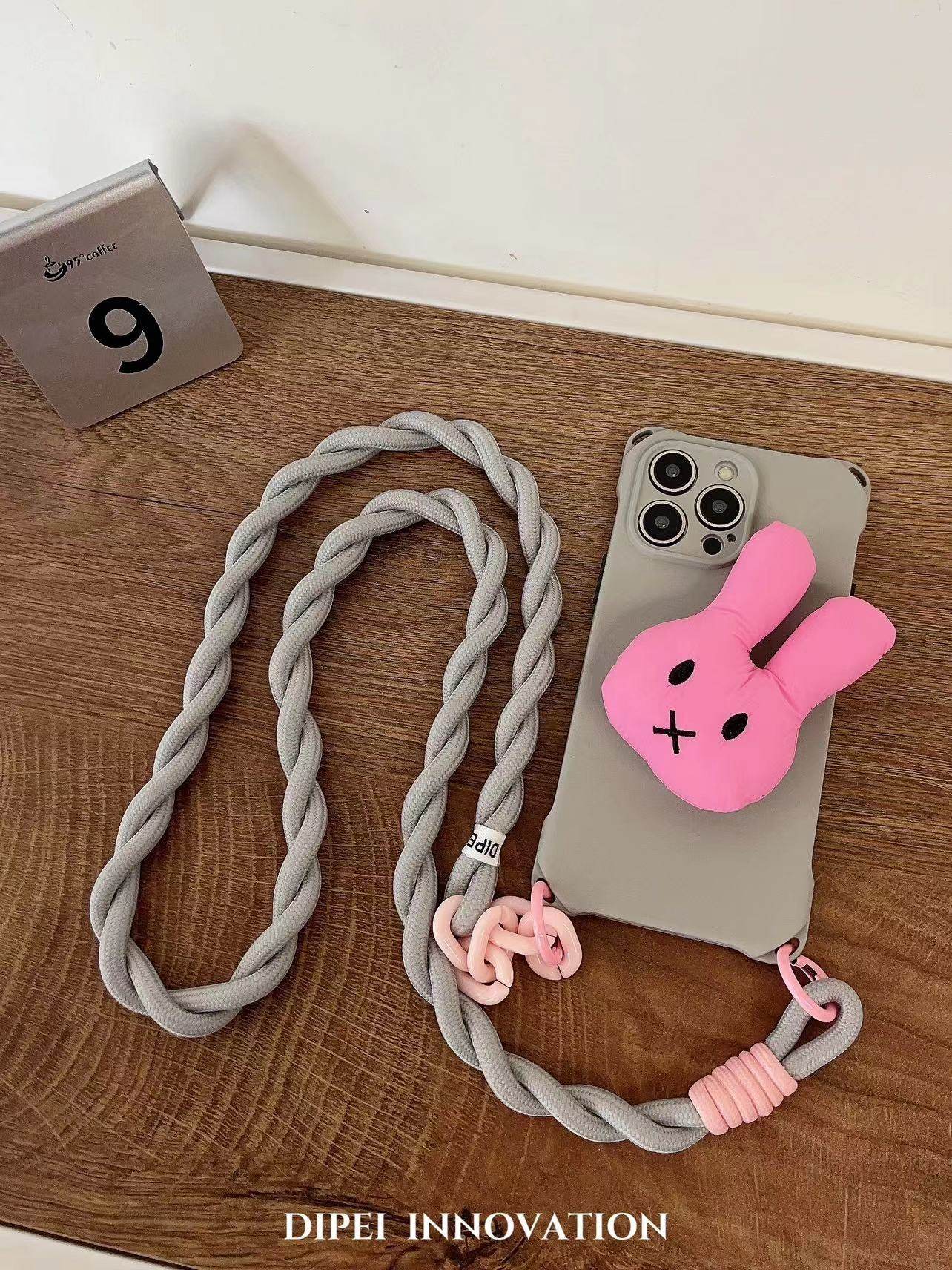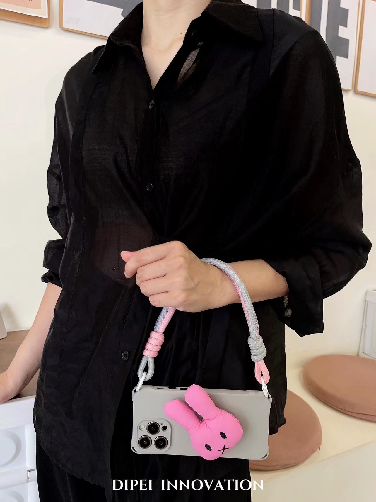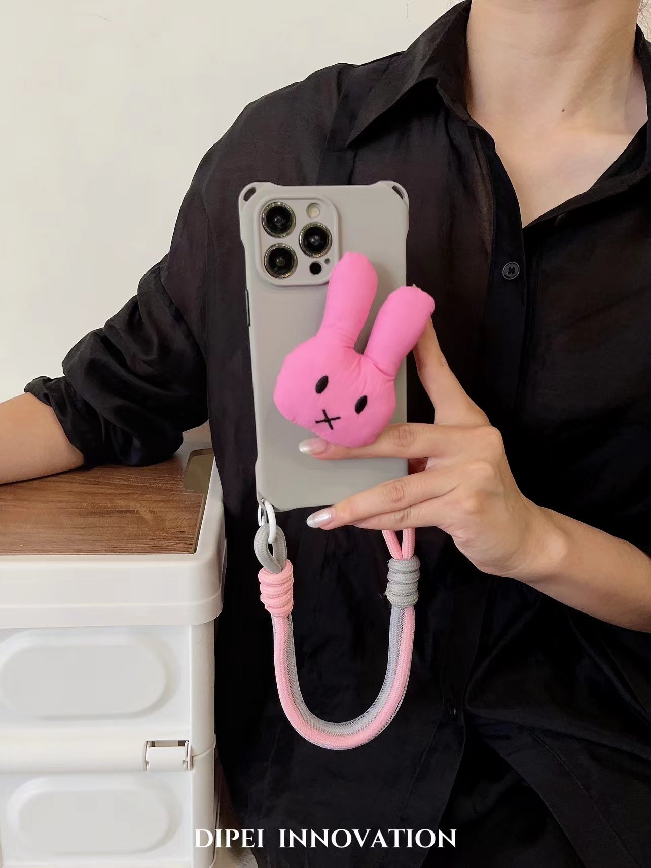日韩粉灰手腕挂绳手机壳带气囊支架14Promax小众原创女适用苹果iPhone13全包华为mate30防摔手提短绳11软新款