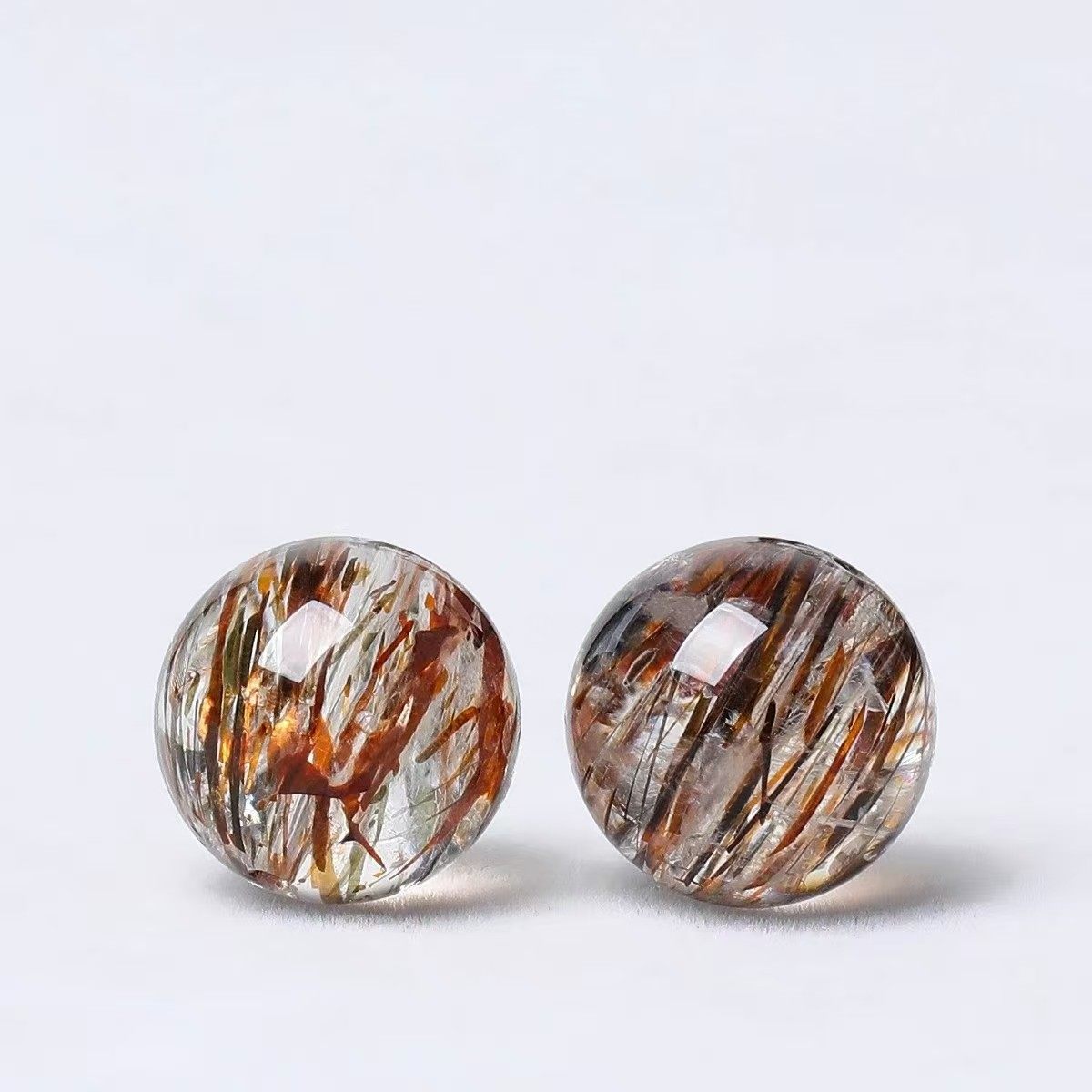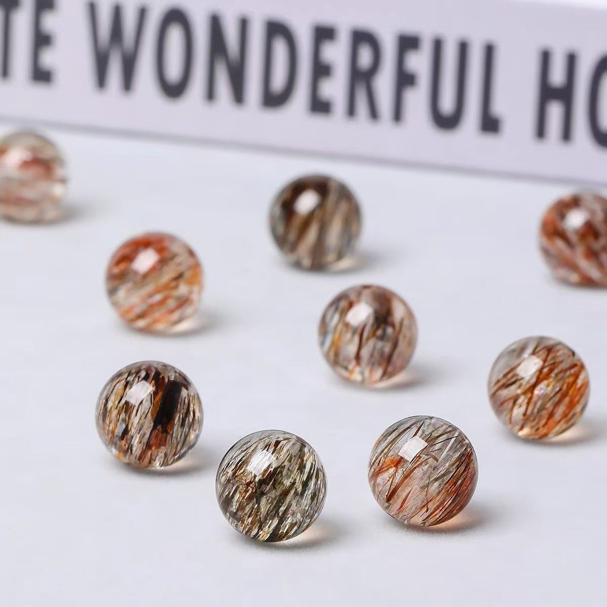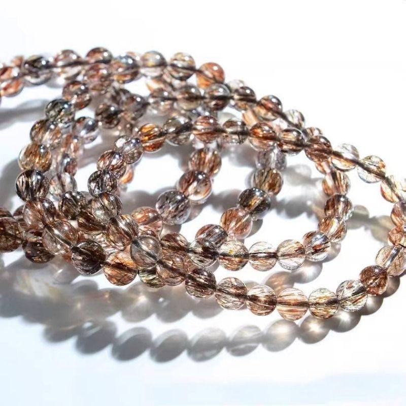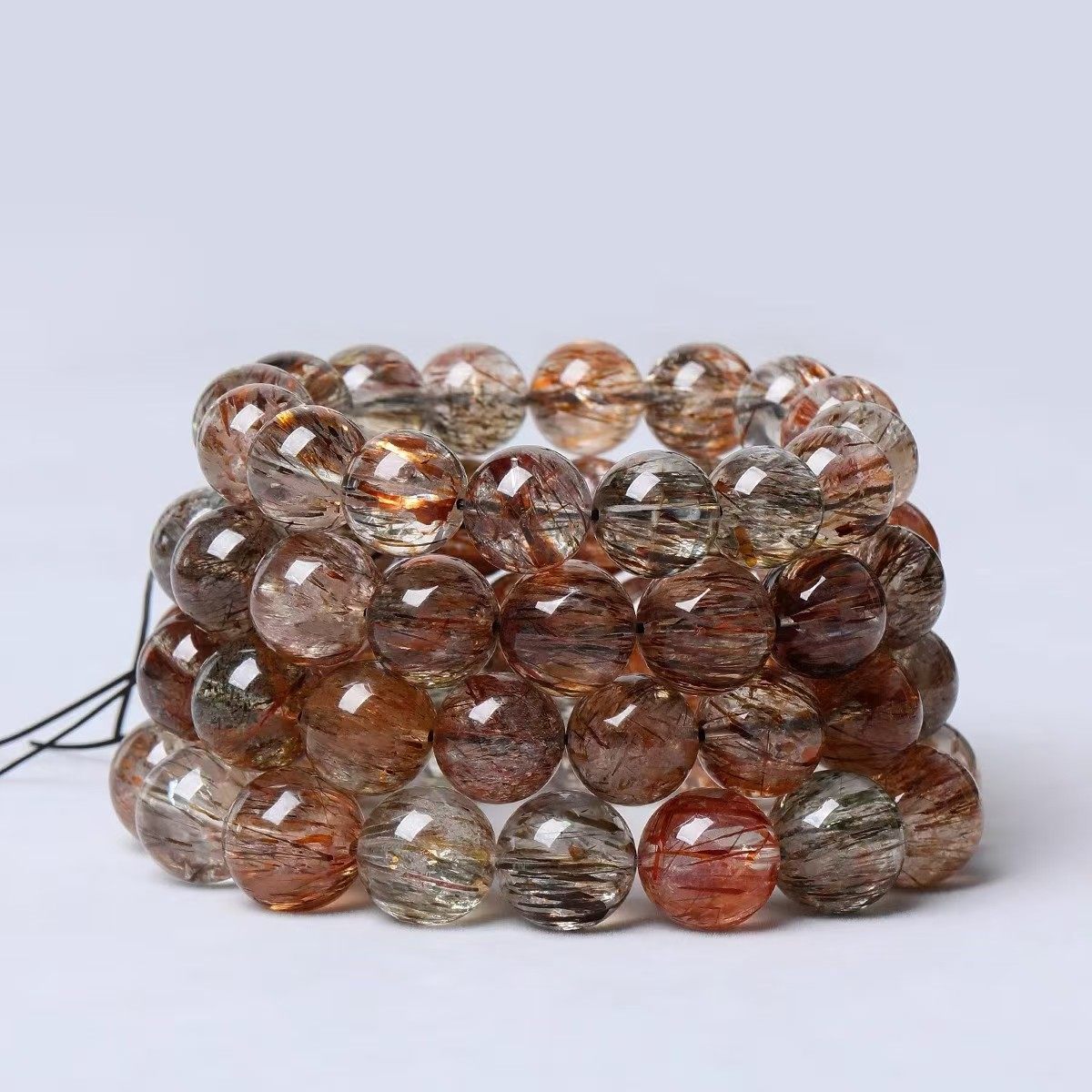 黑金超七散珠水晶单珠手链女骨干发晶水晶手串圆珠水晶散珠DIY