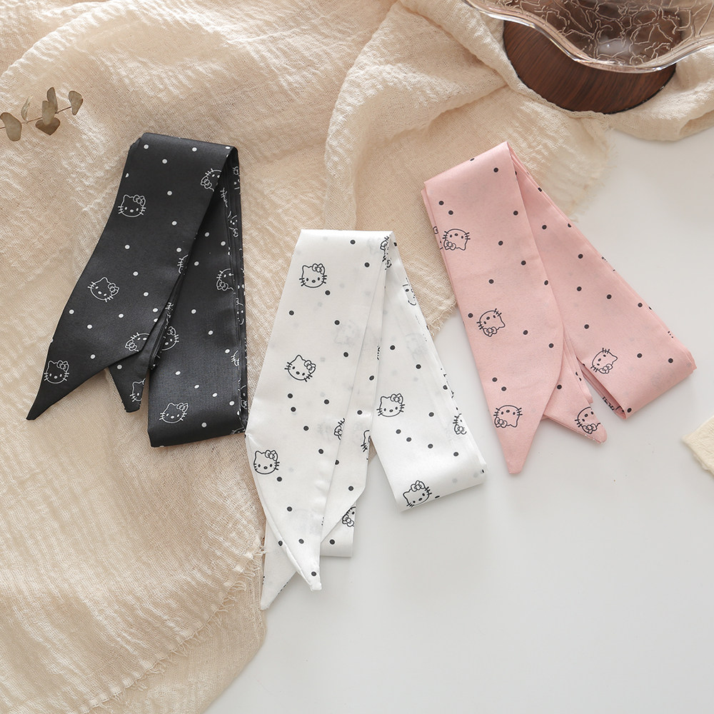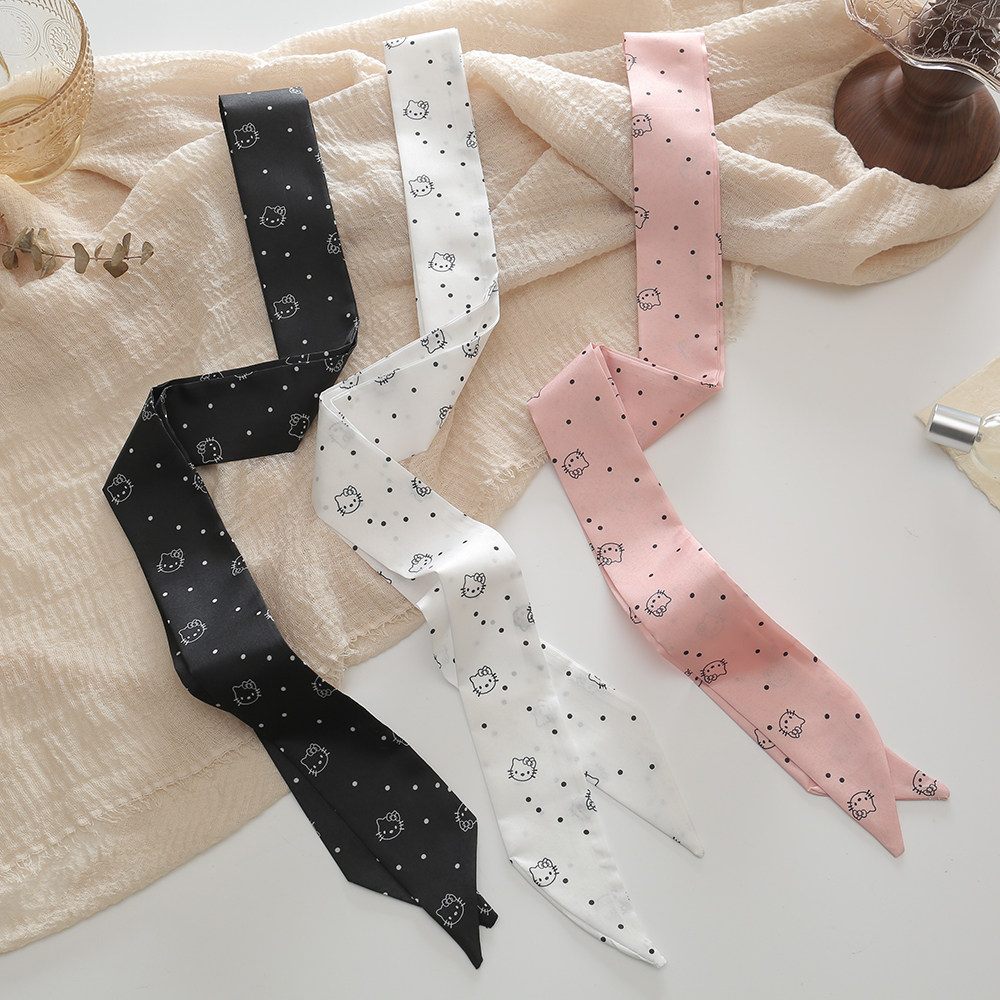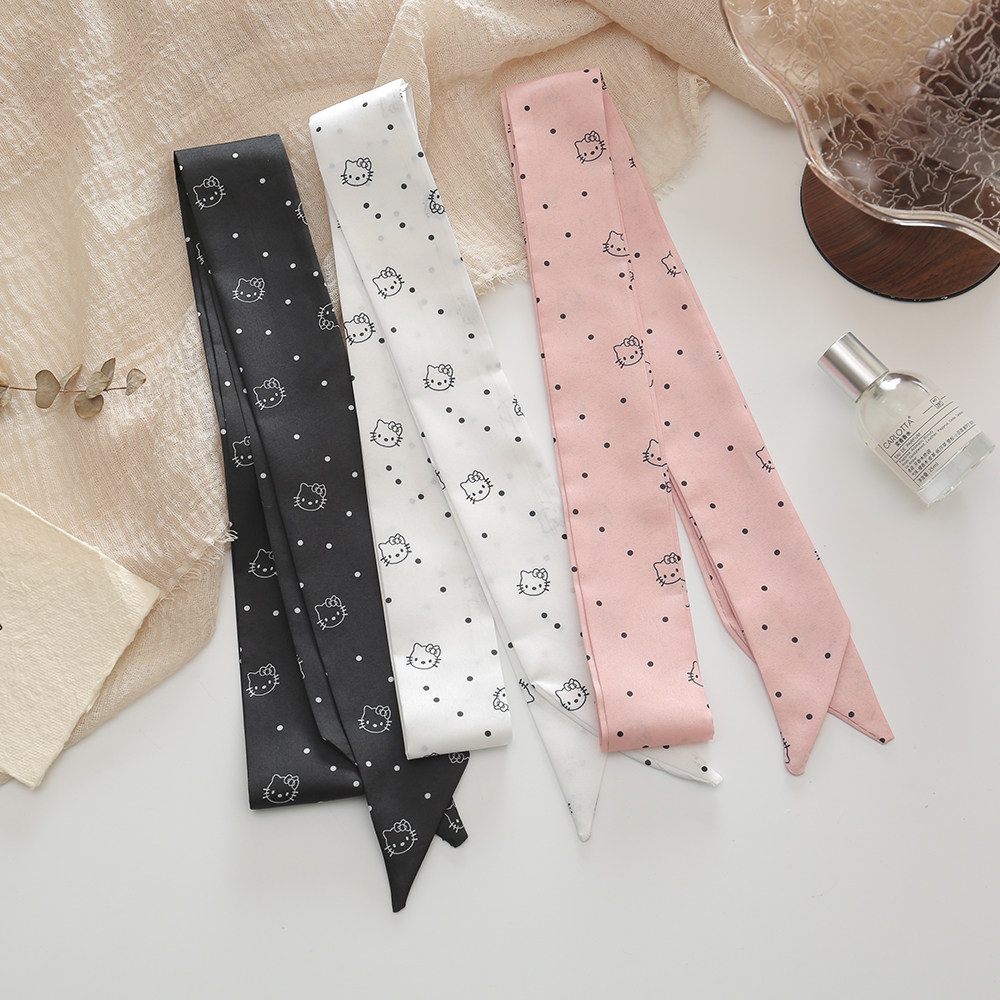 女士细窄长条点点发带可爱卡通猫咪头带裤子装饰腰带丝巾包包配饰