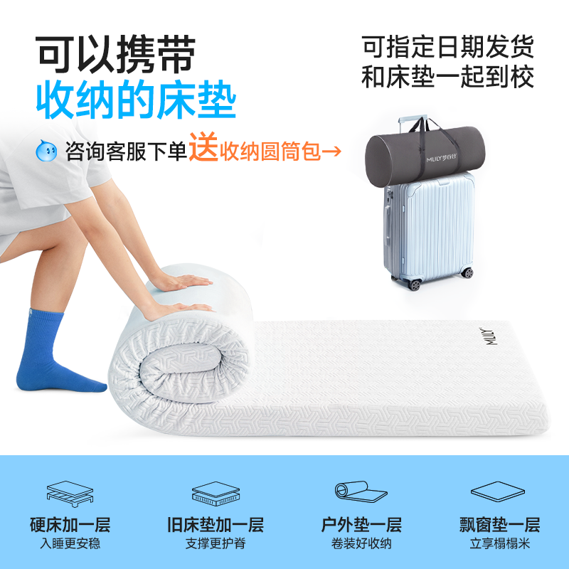 喜临门城市爱情薄垫学生宿舍租房记忆棉床垫便携折卷收纳 芝士垫