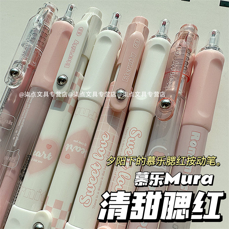 慕乐清甜腮红可爱ins高颜值记账签字速干按动笔学生好写好用0.5黑色ST刷题中性笔