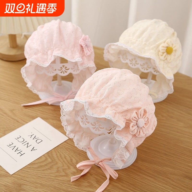 婴儿帽子春秋薄款女宝宝公主蕾丝遮阳渔夫帽可爱超萌婴幼儿盆帽潮