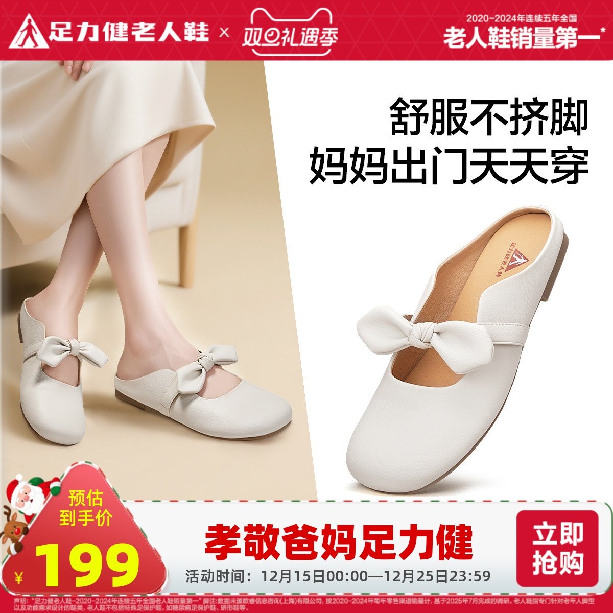 足力健老人鞋夏季新款休闲半拖穆勒鞋中老年妈妈鞋一脚蹬凉拖女