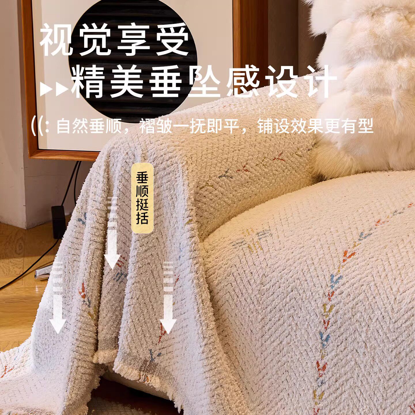 敏顺夏季沙发盖布凉感轻奢艺术防猫抓沙发套罩防滑沙发垫2025新款