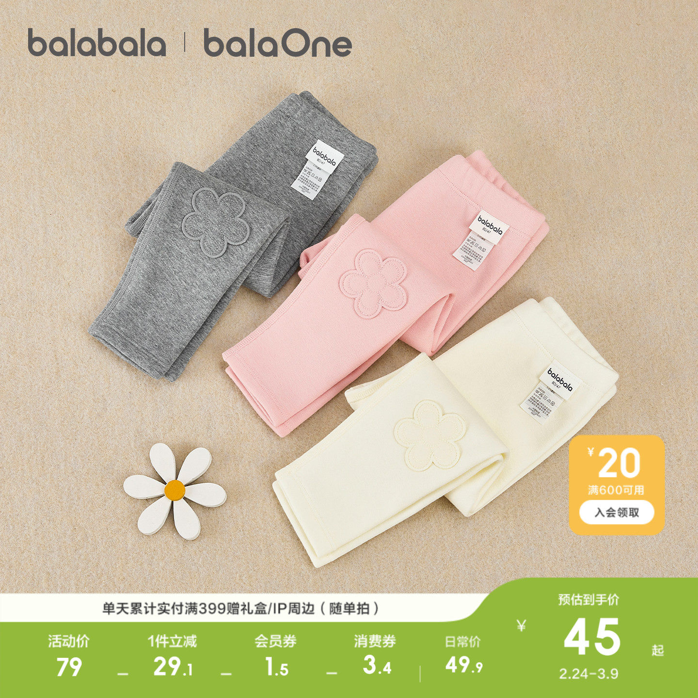 巴拉巴拉女童打底裤小童宝宝加绒裤子秋冬季新款童装儿童长裤厚孩