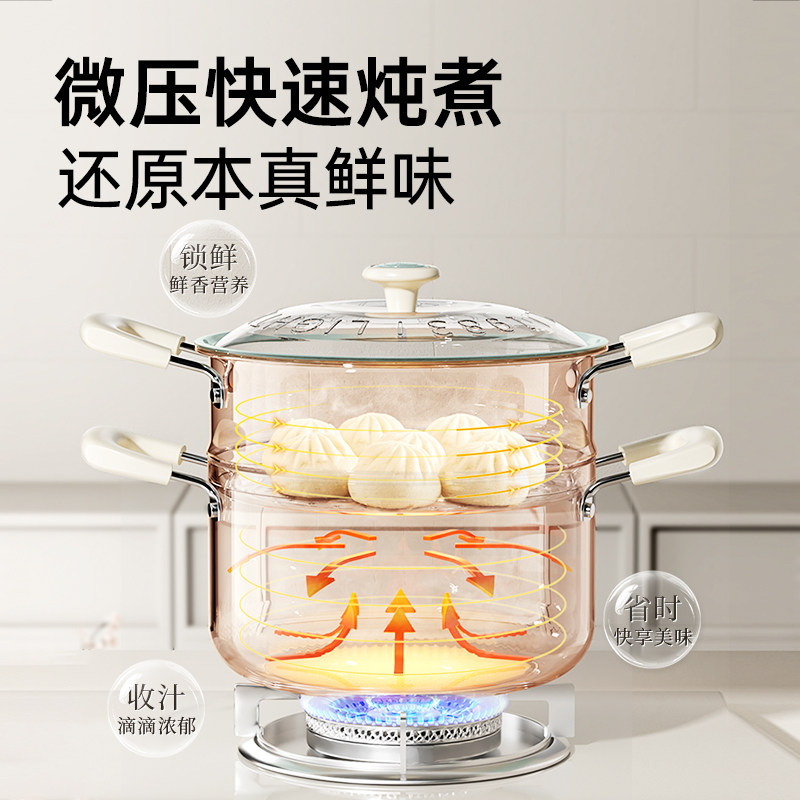 炊大皇汤锅家用2025新款微压锅无氟涂层燃气电磁炉专用双耳煲汤锅
