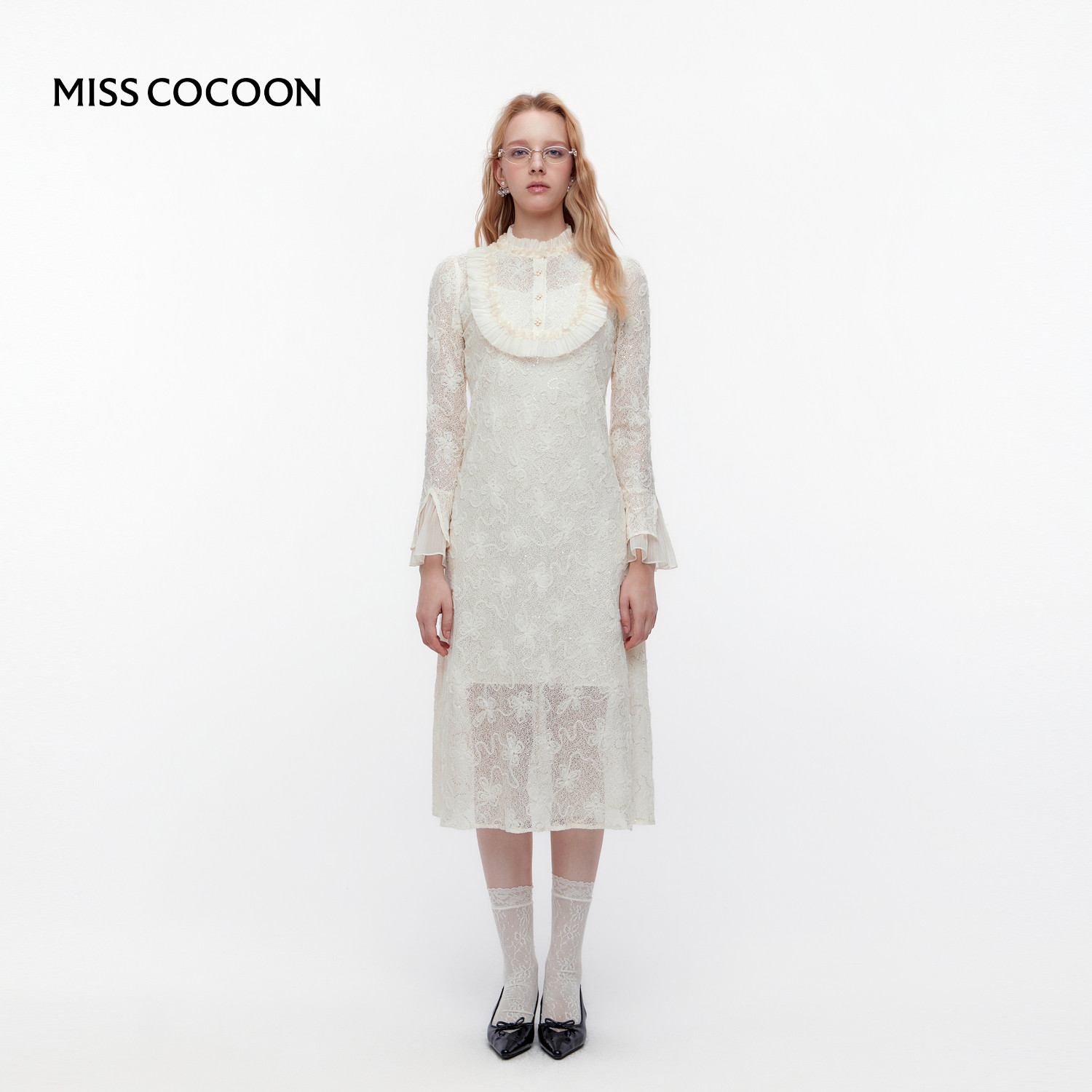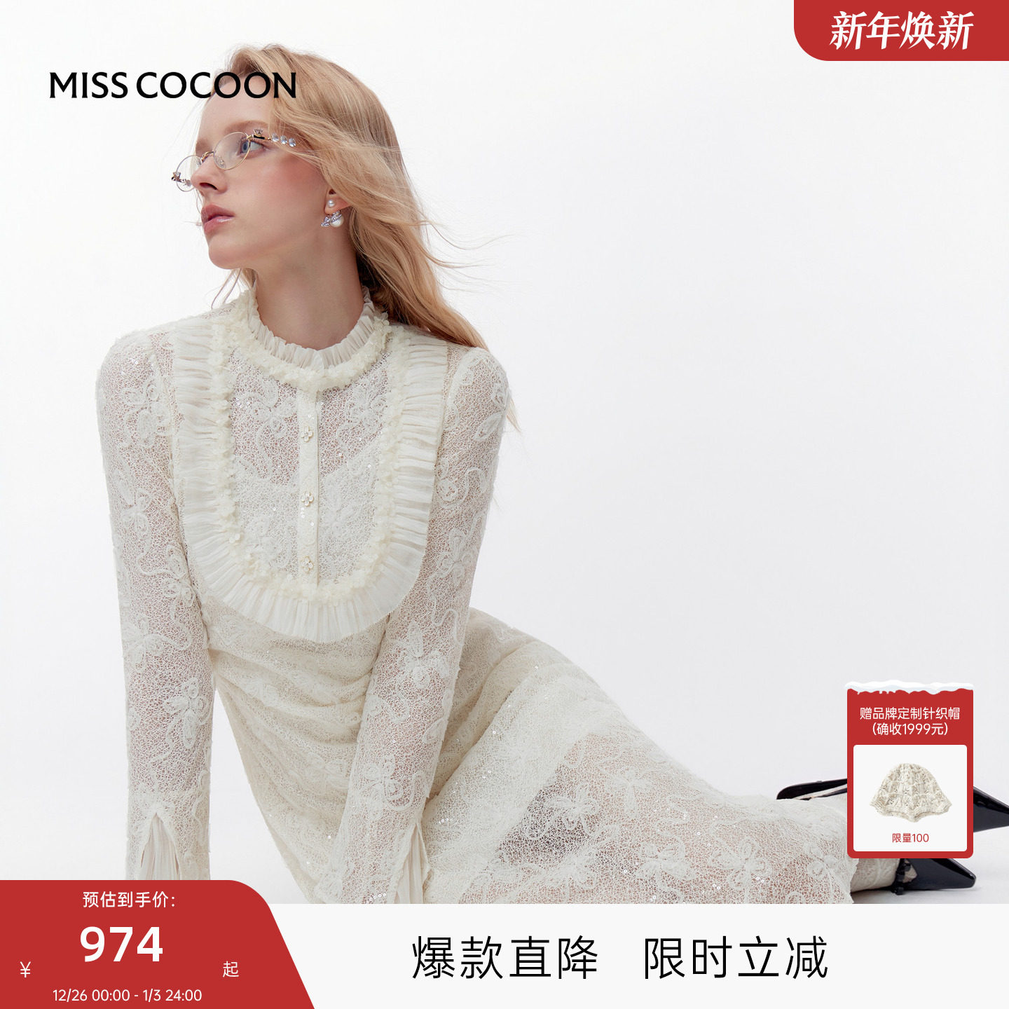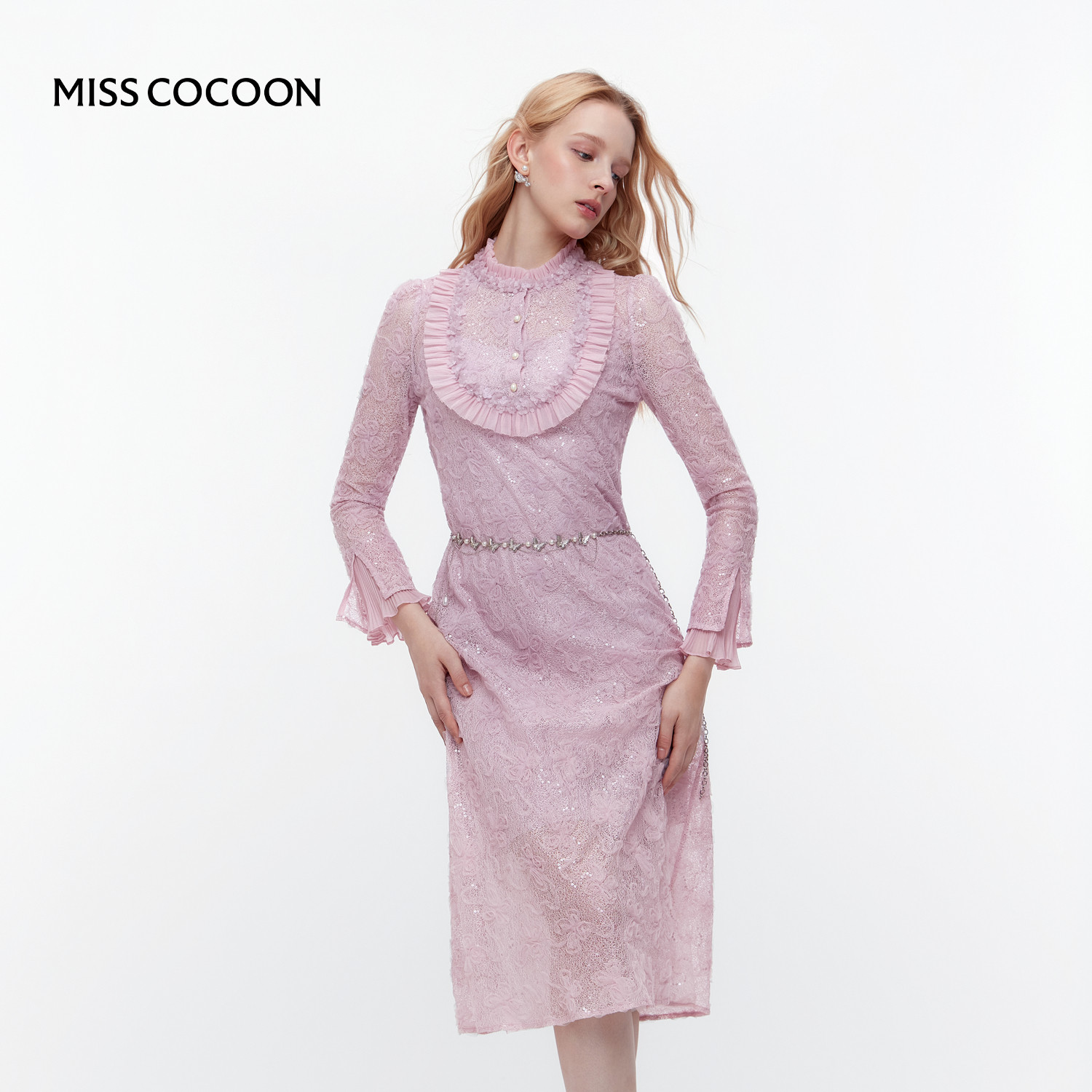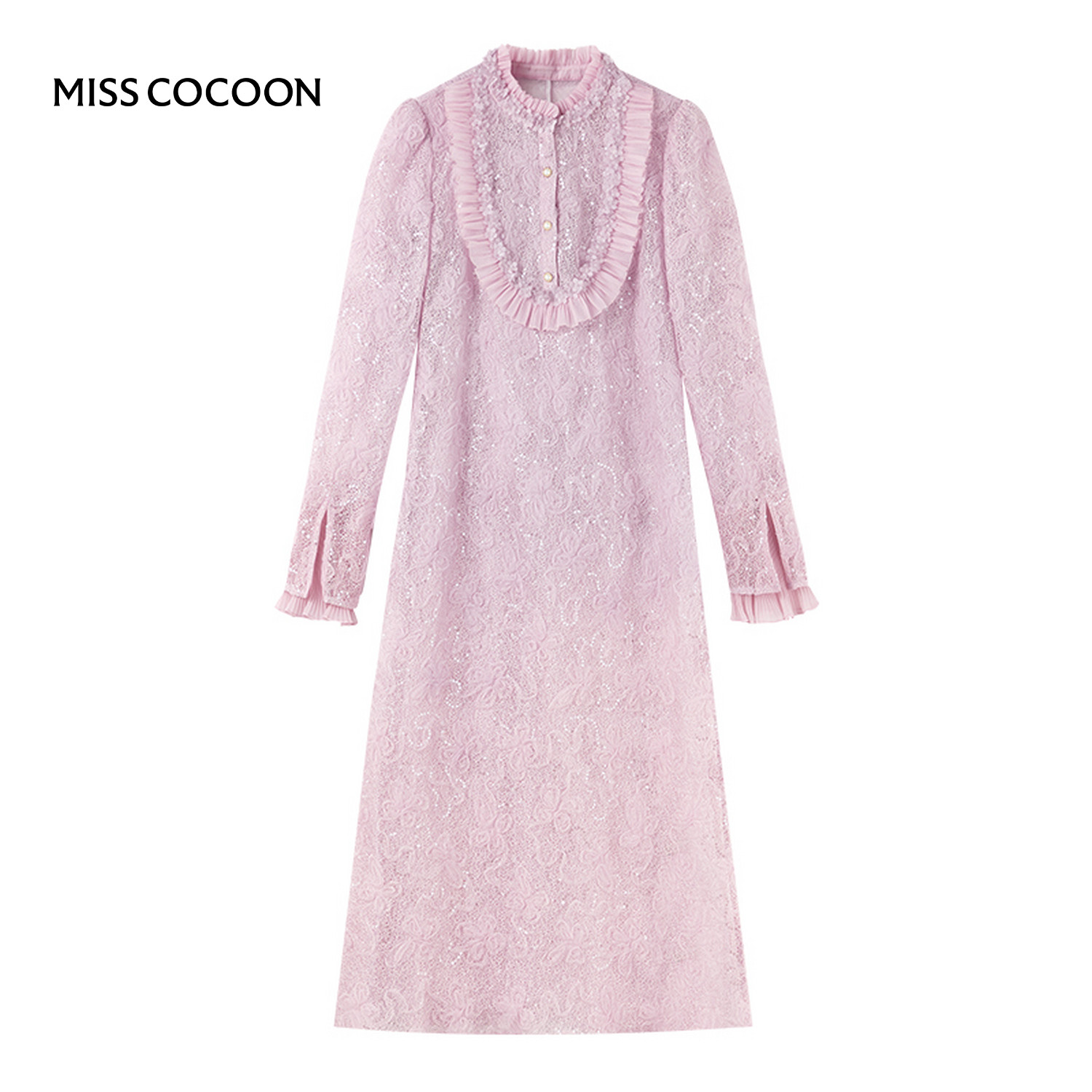 MISSCOCOON可可尼立体蝴蝶紫色裙子2025秋冬新款千金风蕾丝连衣裙