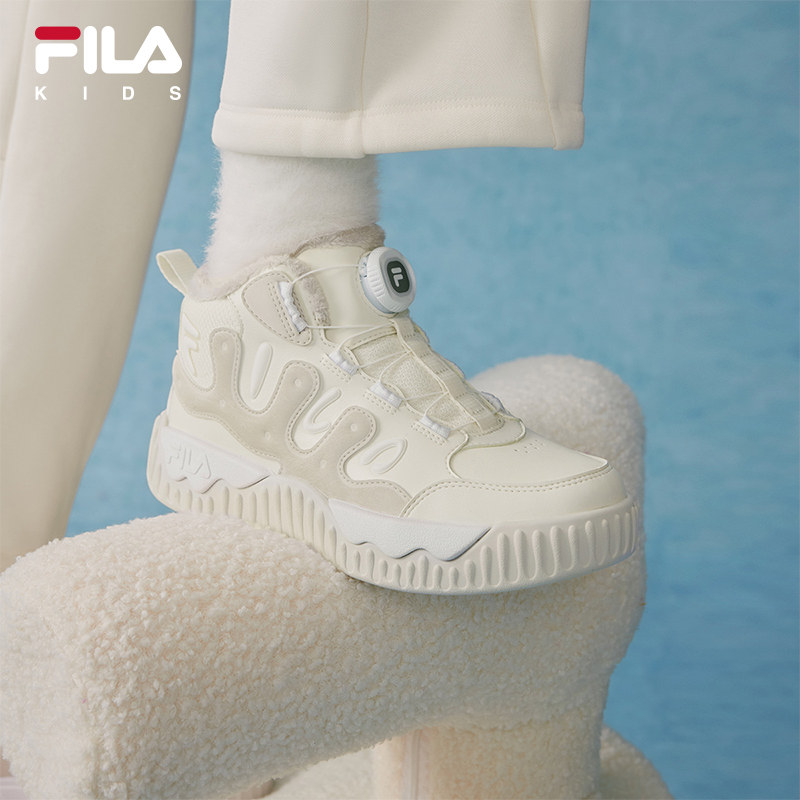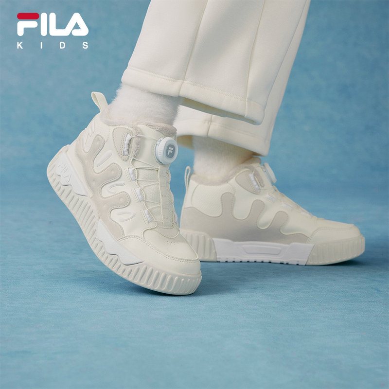 FILA KIDS斐乐童鞋儿童板鞋冬季款男大童旋钮加绒保暖舒适休闲鞋