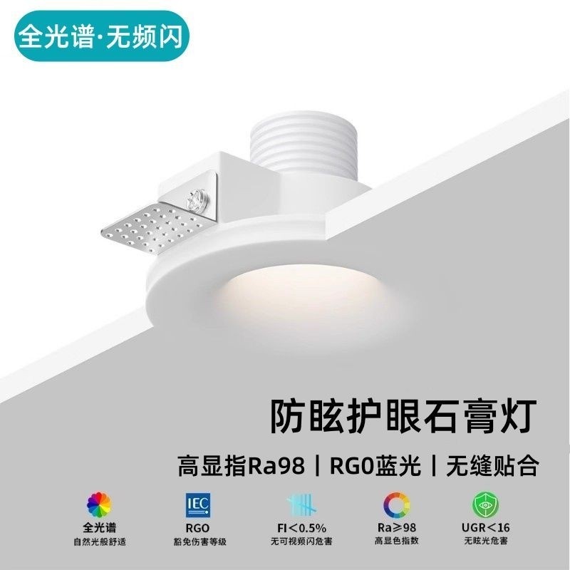 嵌入式射灯石膏灯全光谱预埋边框led智能客厅筒灯防眩护眼COB筒灯