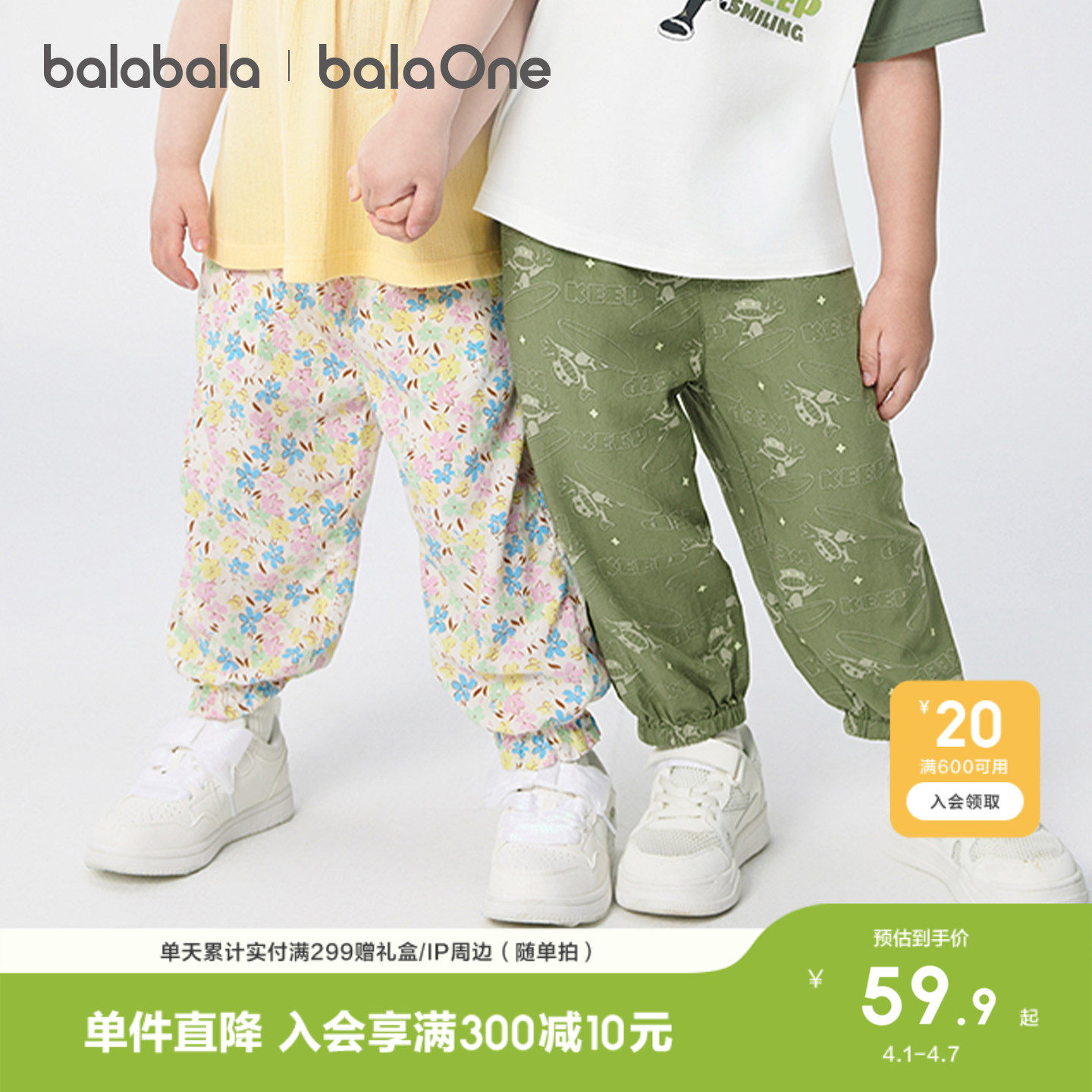 巴拉巴拉儿童裤子男女童夏防蚊裤睡裤舒适爽滑可外出